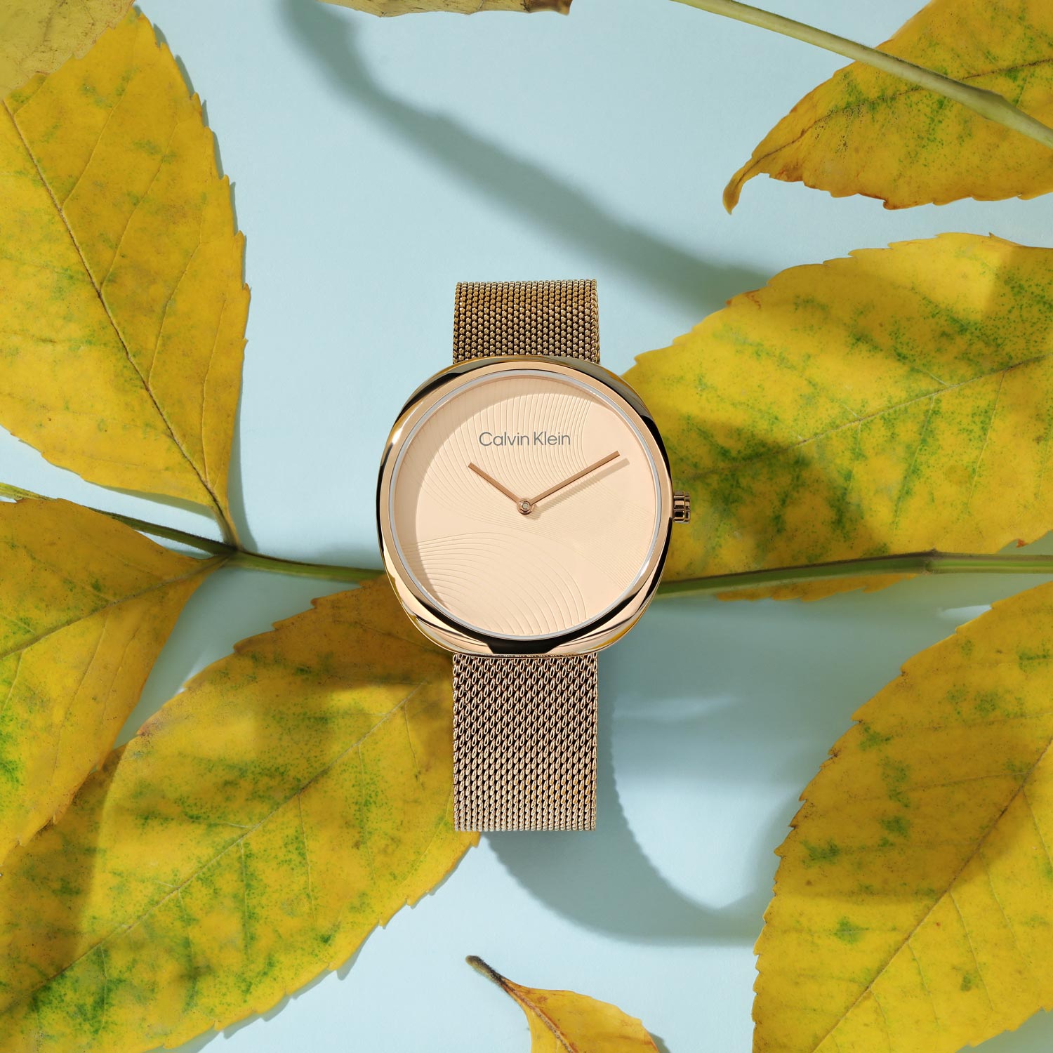 Этот стильный женский аксессуар изменит ваше представление о часах. Время немного поэкспериментировать. Наручные женские часы. Круглый стальной корпус. Структурный циферблат с фирменным логотипом Calvin Klein. Без меток. Заводная головка украшена логотипом ''ck''. Браслет миланского плетения.
