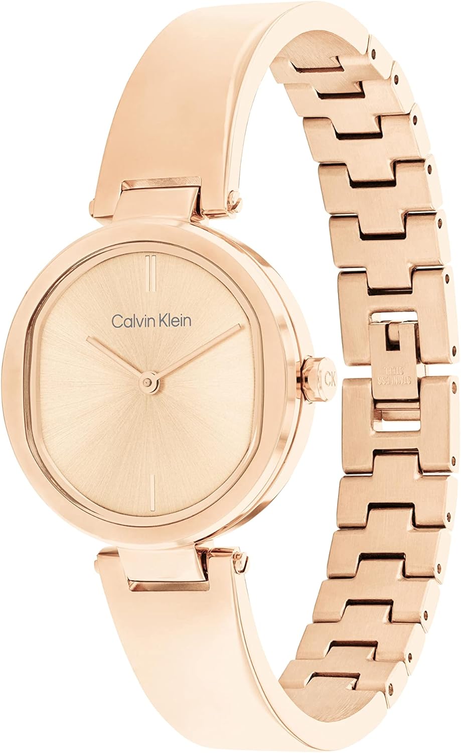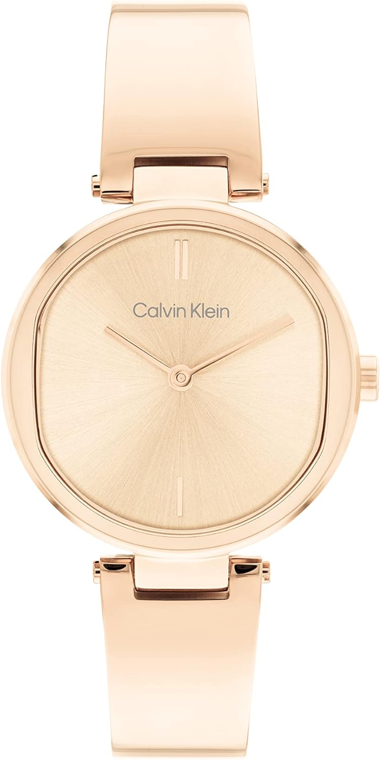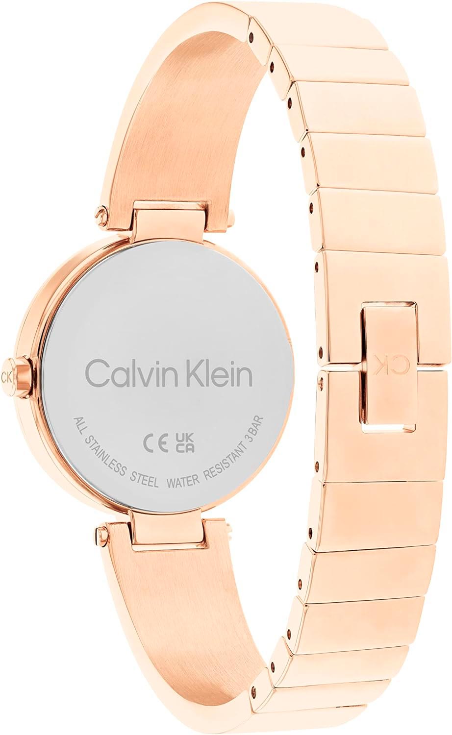 Эти часы великолепно подчеркивают утонченный вкус своей обладательницы и ее желание быть в стороне от всего сиюминутного. Наручные женские кварцевые часы. Круглый стальной корпус с матовой и полированной отделкой. Циферблат выполнен по технологии Sunray (солнечные лучи) и украшен фирменным логотипом Calvin Klein. Накладные метки в виде штрихов. Прямоугольные стрелки в стиле Baton. Гладкая заводная головка украшена логотипом ''ck''. Надежный стальной браслет с ювелирной застежкой.