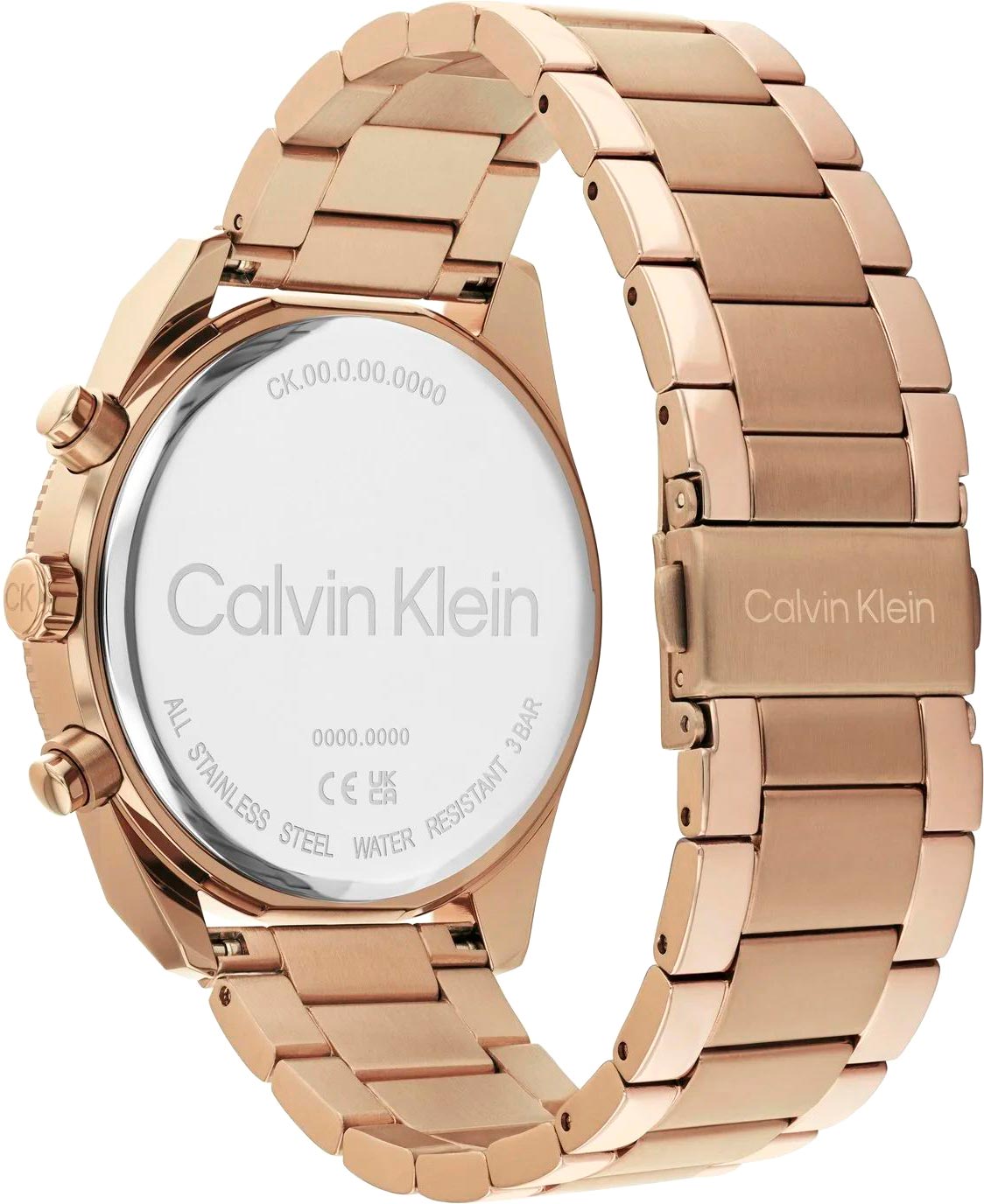 Надежный стальной браслет с матовой и полированной отделкой. Раскладывающаяся застежка с двумя кнопками и логотипом бренда Calvin Klein.