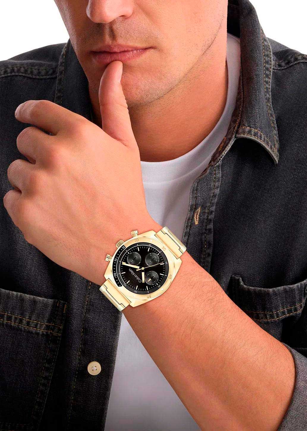 Циферблат с радиальным узором, создающим эффект глубины выполнен по технологии Sunray (солнечные лучи) и украшен фирменным логотипом Calvin Klein.