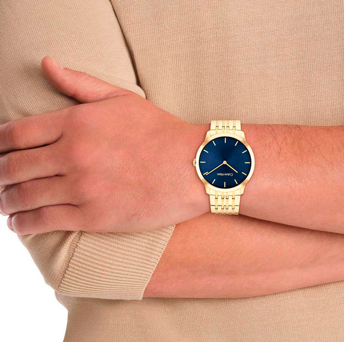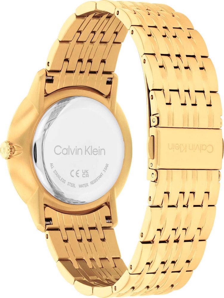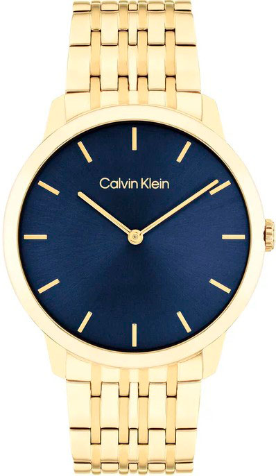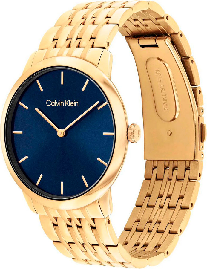 Элегантная лаконичность дизайна станет лучшим завершением повседневного образа. Наручные кварцевые часы унисекс. Круглый стальной корпус. Циферблат с метками в виде штрихов украшен фирменным логотипом ''Calvin Klein''. Рифленая заводная головка. Стальной браслет с раскладывающейся застежкой.