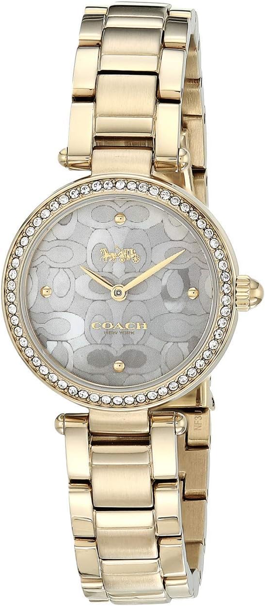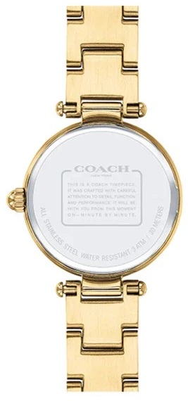 Обворожительный аксессуар станет завершающим штрихом вашего безупречного образа. Женские часы со стальным корпусом, украшенным кристаллами. На циферблате изящный узор. Метки в виде точек. Рифленая заводная головка. На задней крышке обращение от COACH к своим клиентам. Стальной браслет с раскладывающейся застежкой.