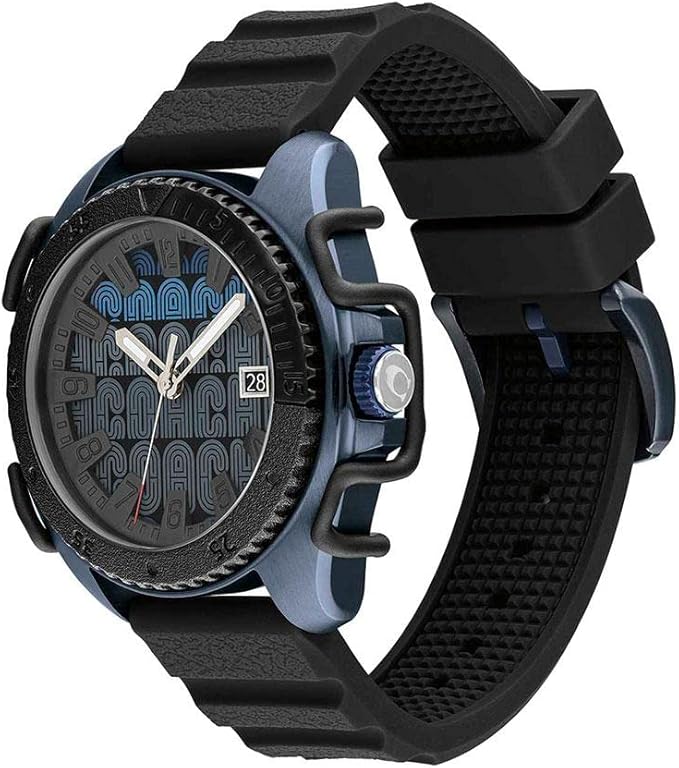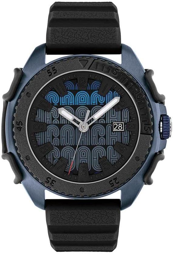 Универсальный аксессуар с отточенным дизайном - воплощение утонченной изысканности. Мужские кварцевые часы в стальном круглом корпусе. Пластиковый безель. Циферблат украшен стилизованным узором. Метки в виде штрихов. Окошко даты. Рифленая заводная головка с защитой. Силиконовый ремешок.