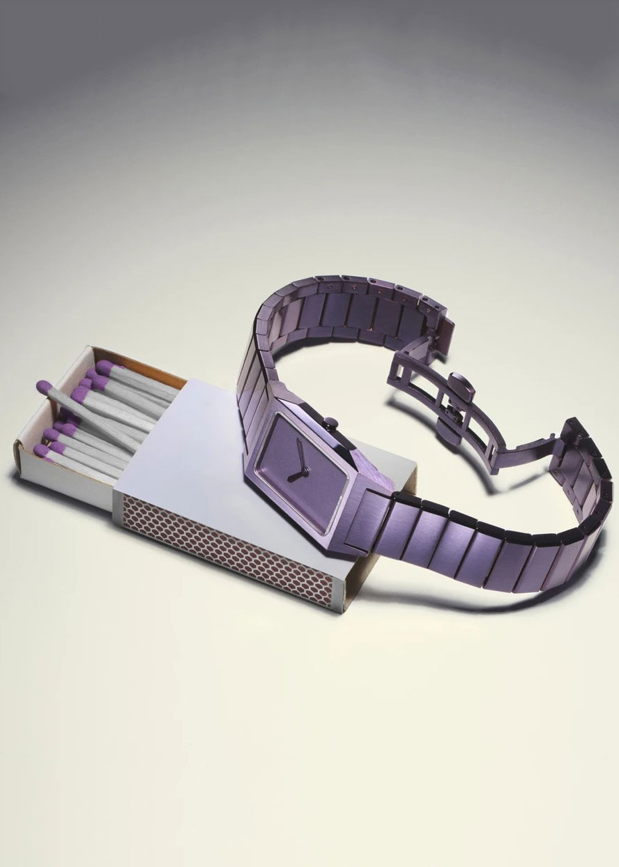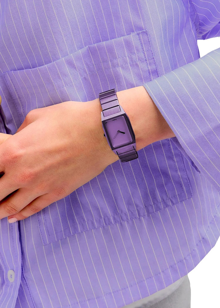 Женские часы Aura Studio 75 с прямоугольным стальным корпусом. Минималистичный матовый циферблат без меток. Секундная стрелка отсутствует. Часовая мечевидная стрелка в стиле Sword, минутная в стиле Skeleton. Задняя крышка крепится на 4-х винтах. Стальной браслет с раскладывающейся застежкой.