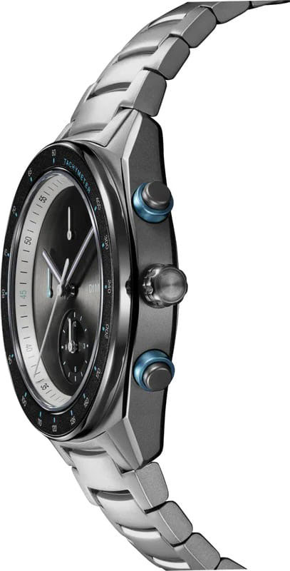 Часы-хронограф Cronografo Essential Black с секундомером и тахиметром. Циферблат без меток защищен прочным сапфировым стеклом. Задняя крышка крепится на 8-ми винтах. Стальной браслет с раскладывающейся застежкой.