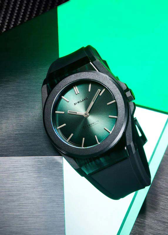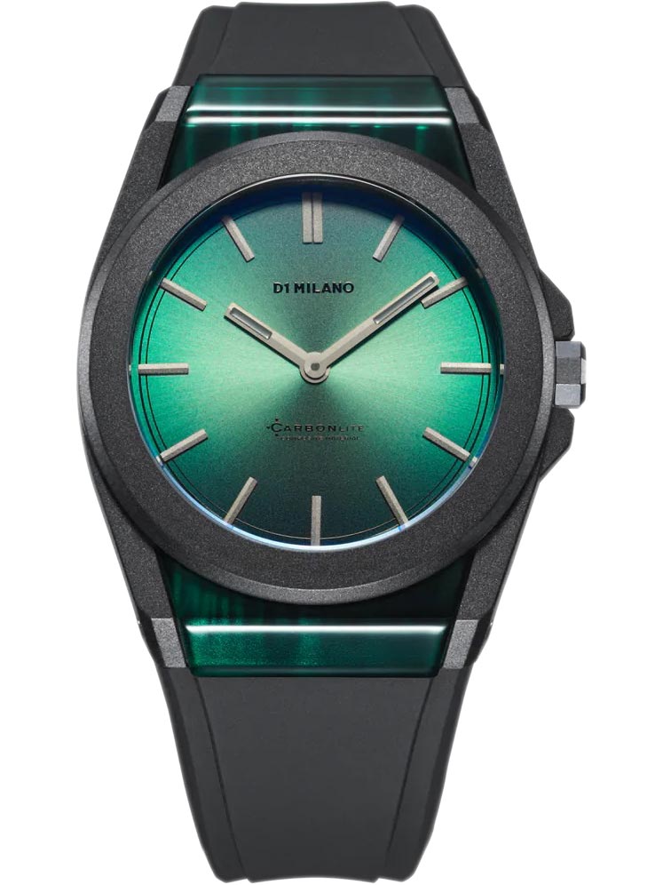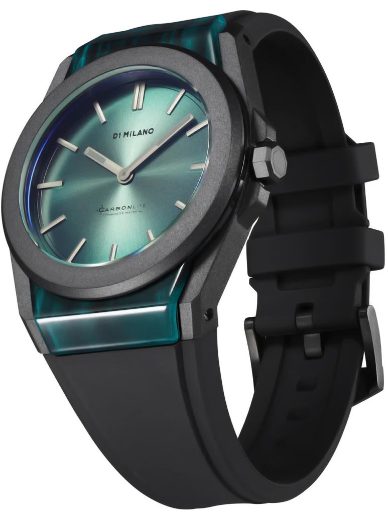 Баланс сложности, силы и техники, обеспечивающий в высшей степени молодежную и легкую посадку. Carbonlite. Мужские часы с круглым корпусом из углеродного нейлона с поликарбонатной внешней рамкой. Композиты из углеродного нейлона и волокна, специально разработанные D1 Milano. Нить изготовлена из EPA-CF, прочность на растяжение 140 МПа, деформация 155 градусов, ударная вязкость 18,67 кДж/м2. Циферблат с метками в виде штрихов выполнен по технологии Sunray (солнечные лучи). Заводная головка с защитой. Задняя крышка из нержавеющей стали крепится на 6-и винтах. Индивидуальный серийный номер. Ремешок с классической застежкой.