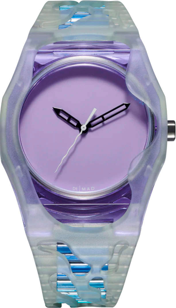 D1 Milano и дизайн-студия MAD Paris объединились для создания ограниченной серии из шести уникальных моделей, поражающих своей яркой цветовой гаммой и монохромной эстетикой без дополнительных элементов на циферблате. Наручные часы Freezer с корпусом из прозрачного нейлона, покрытого матовым полупрозрачным полиуретаном. Циферблат матовый без меток. Стрелки в стиле Skeleton, оригинальная волнообразная секундная стрелка. Стальная задняя крышка крепится на 4-х винтах. Индивидуальный серийный номер. Ремешок с классической застежкой.