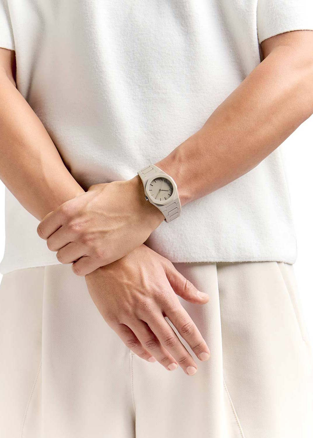 Часы Ecru - идеальный баланс между стилем и удобством ношения, что делает их универсальным компаньоном для любого случая. Наручные часы унисекс из поликарбоната с покрытием Soft-Touch. Циферблат с метками в виде штрихов. Стальная задняя крышка крепится на 4-х винтах. Индивидуальный серийный номер. Браслет с раскладывающейся застежкой.
