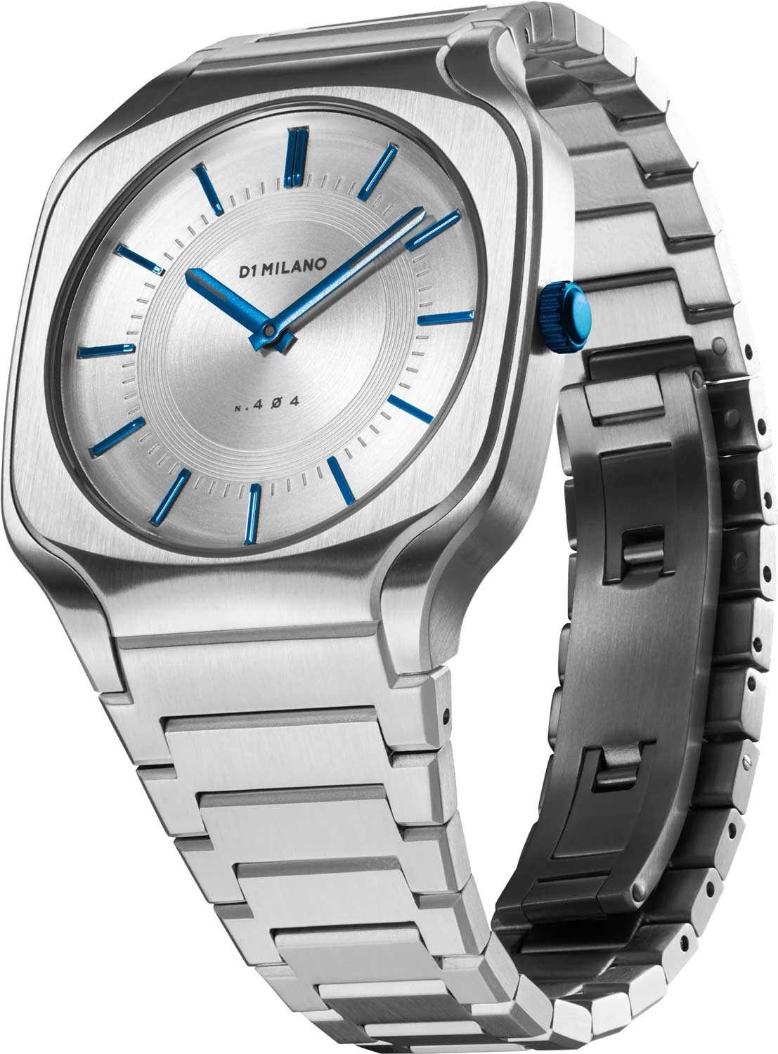 Уникальные монохромные часы - эффектный выбор, подчеркивающий ваш изысканный стиль. Стильные наручные часы унисекс Silver Square. Стальной квадратный корпус с сатинированной отделкой. Циферблат с накладными метками в виде штрихов выполнен по технологии Sunray (солнечные лучи). Стрелки и индексы окрашены в синий хроматический оттенок, контрастирующий с цветами корпуса. Задняя крышка из нержавеющей стали крепится на 4-х винтах. Индивидуальный серийный номер. Стальной браслет с раскладывающейся застежкой.