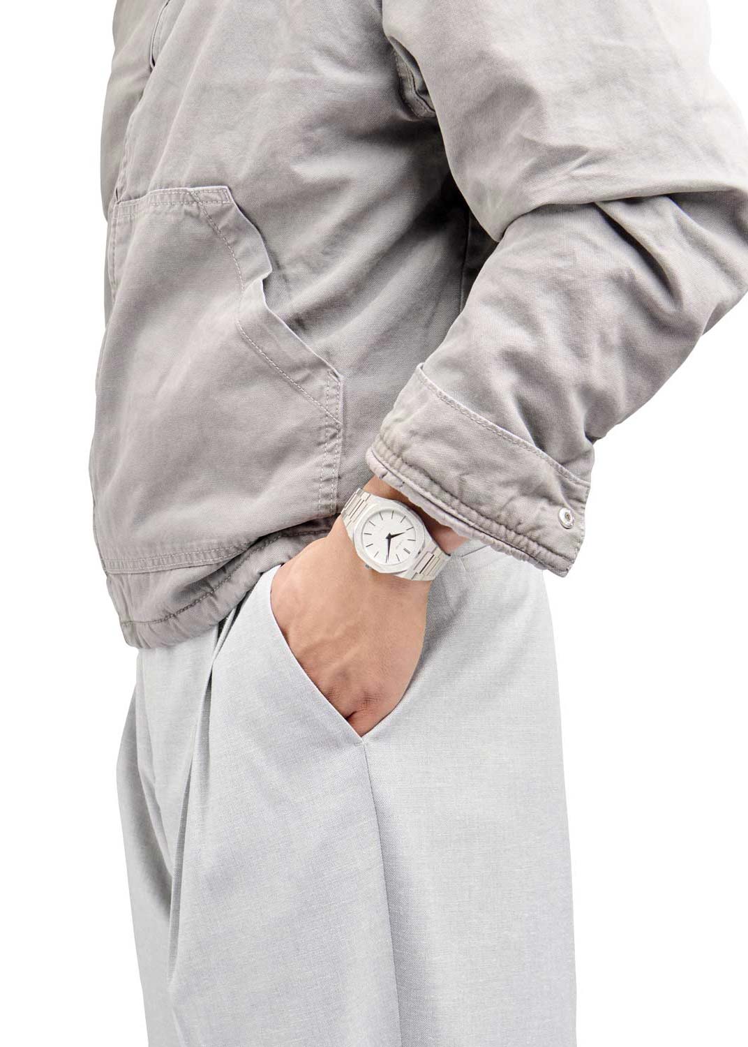 Эти часы на каждый день подойдут тем, кто стремится следовать последним трендам в моде. Colors White. Ультратонкие унисекс часы со стальным корпусом. Циферблат выполнен по принципу льняной текстуры и защищен прочным сапфировым стеклом. Метки в виде штрихов. Задняя крышка крепится на 8-ми винтах. Индивидуальный серийный номер. Браслет с раскладывающейся застежкой.