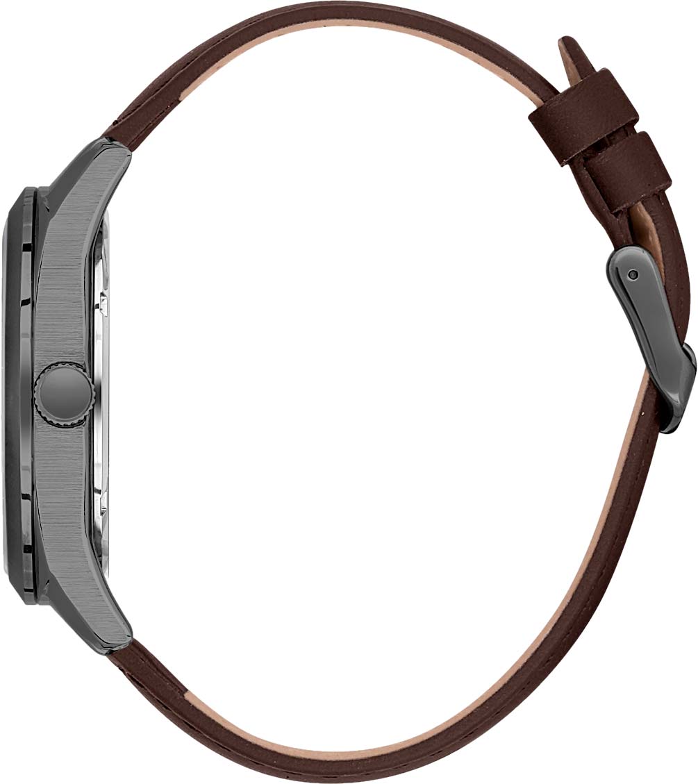 Идеально для тех, кто ищет универсальный аксессуар с выразительным характером. Мужские часы. Круглый металлический корпус. Циферблат выполнен по технологии Sunray (солнечные лучи). Метки в виде штрихов. Сектор вращающегося диска с датами находится в положении 3 часа. Рифленая заводная головка. Кожаный ремешок с классической застежкой.