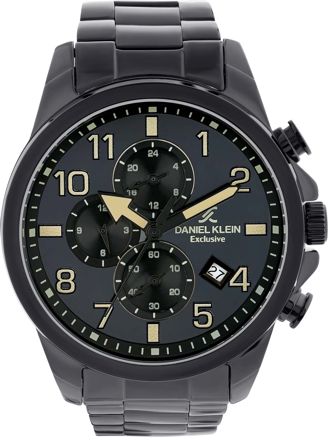 С этими мужскими дизайнерскими часами вы будете излучать стиль и элегантность в любых обстоятельствах. Мужские кварцевые часы. Круглый металлический корпус с черным IP покрытием. Циферблат выполнен по технологии Sunray (солнечные лучи), украшен фирменным логотипом Daniel Klein в положении 3 часа и защищен минеральным стеклом. Метки в виде арабских цифр, 3, 6, 9 и 12 часовые метки в виде штрихов. Метки и стрелки с люминесцентным покрытием, которое светится в темноте после непродолжительной зарядки на свету. Окошко даты находится между отметками 4 и 5 часов. 12-ти и 24-х часовой формат времени. Второй часовой пояс. Рифленая заводная головка с защитой. Частично полированный и сатинированный стальной браслет с черным IP покрытием и раскладывающейся застежкой.