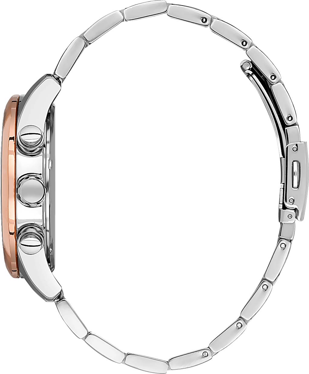 Элегантные мужские часы с отличным функционалом подчеркнут безупречное чувство стиля и статус своего обладателя. Мужские кварцевые часы. Круглый металлический корпус с IP покрытием. Гильошированный циферблат украшен фирменным логотипом Daniel Klein в положении 12 часов и защищен минеральным стеклом. Метки в виде арабских цифр. По краю циферблата нанесена секундная шкала с шагом 0,2 секунды. Окошко даты находится между отметками 4 и 5 часов. 12-ти и 24-х часовой формат времени. Второй часовой пояс. Частично полированный и сатинированный стальной браслет с розовым IP покрытием и раскладывающейся застежкой.