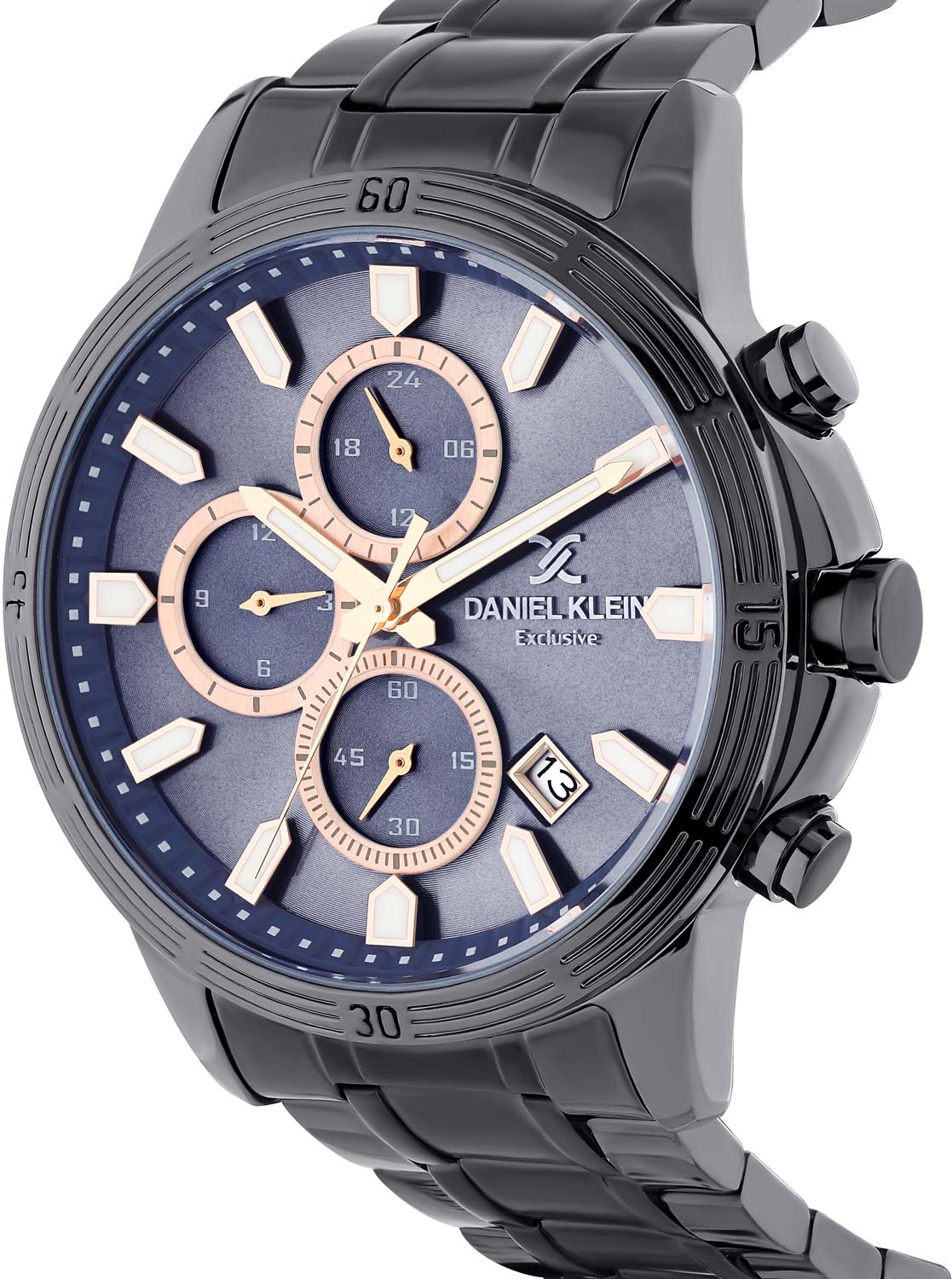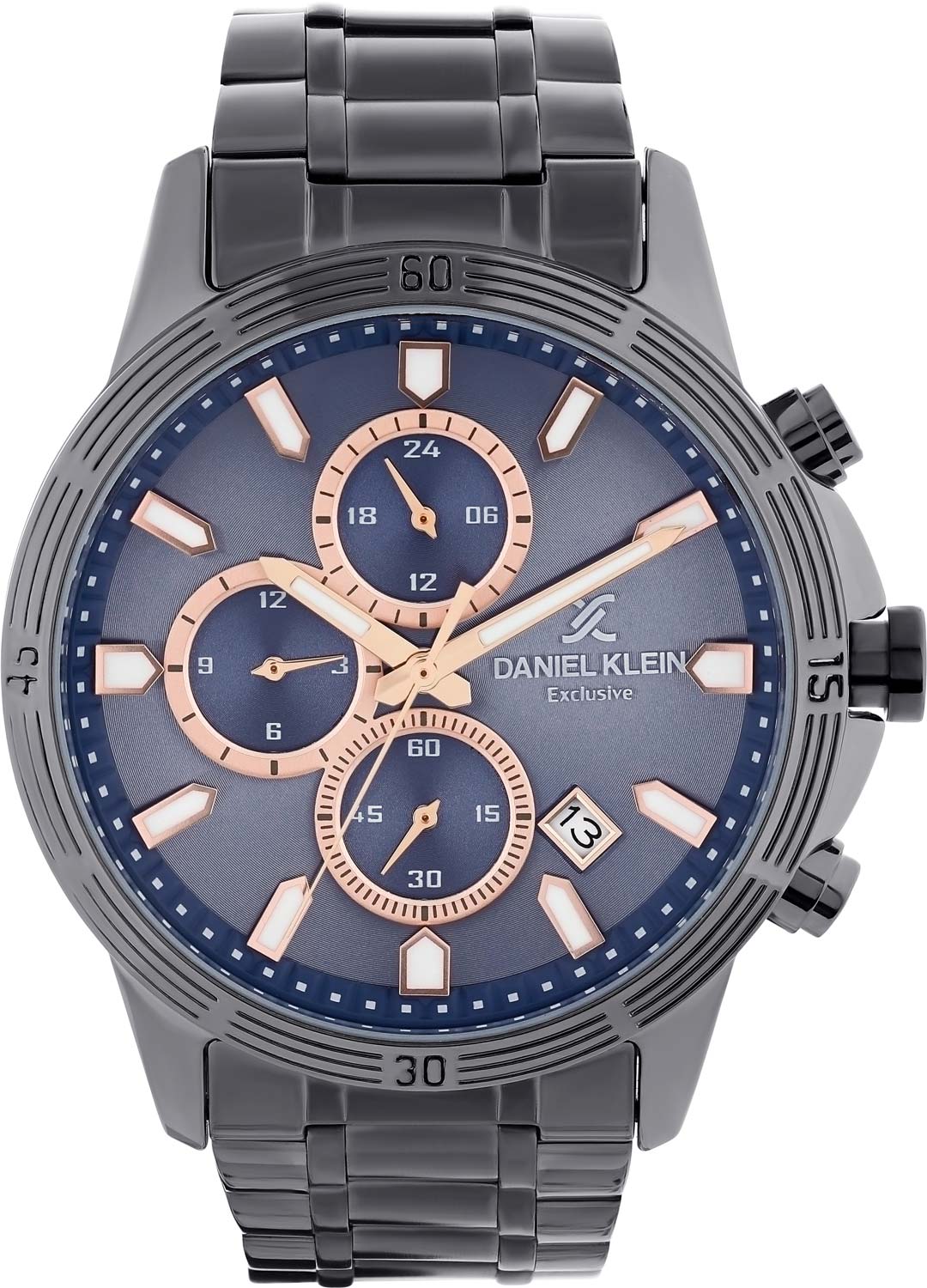 Эти стильные мужские часы позволят вам эффектно заявить о себе и выразить свою индивидуальность.Мужские кварцевые часы. Круглый металлический корпус с IP покрытием антрацитового цвета. Безель с минутными отметками. Циферблат выполнен по технологии Sunray (солнечные лучи), украшен фирменным логотипом Daniel Klein в положении 3 часа и защищен минеральным стеклом. Метки в виде штрихов и стрелки с люминесцентным покрытием, которое светится в темноте после непродолжительной зарядки на свету. Окошко даты находится между отметками 4 и 5 часов. 12-ти и 24-х часовой формат времени. Второй часовой пояс. Заводная головка с защитой. Частично полированный и сатинированный стальной браслет с IP