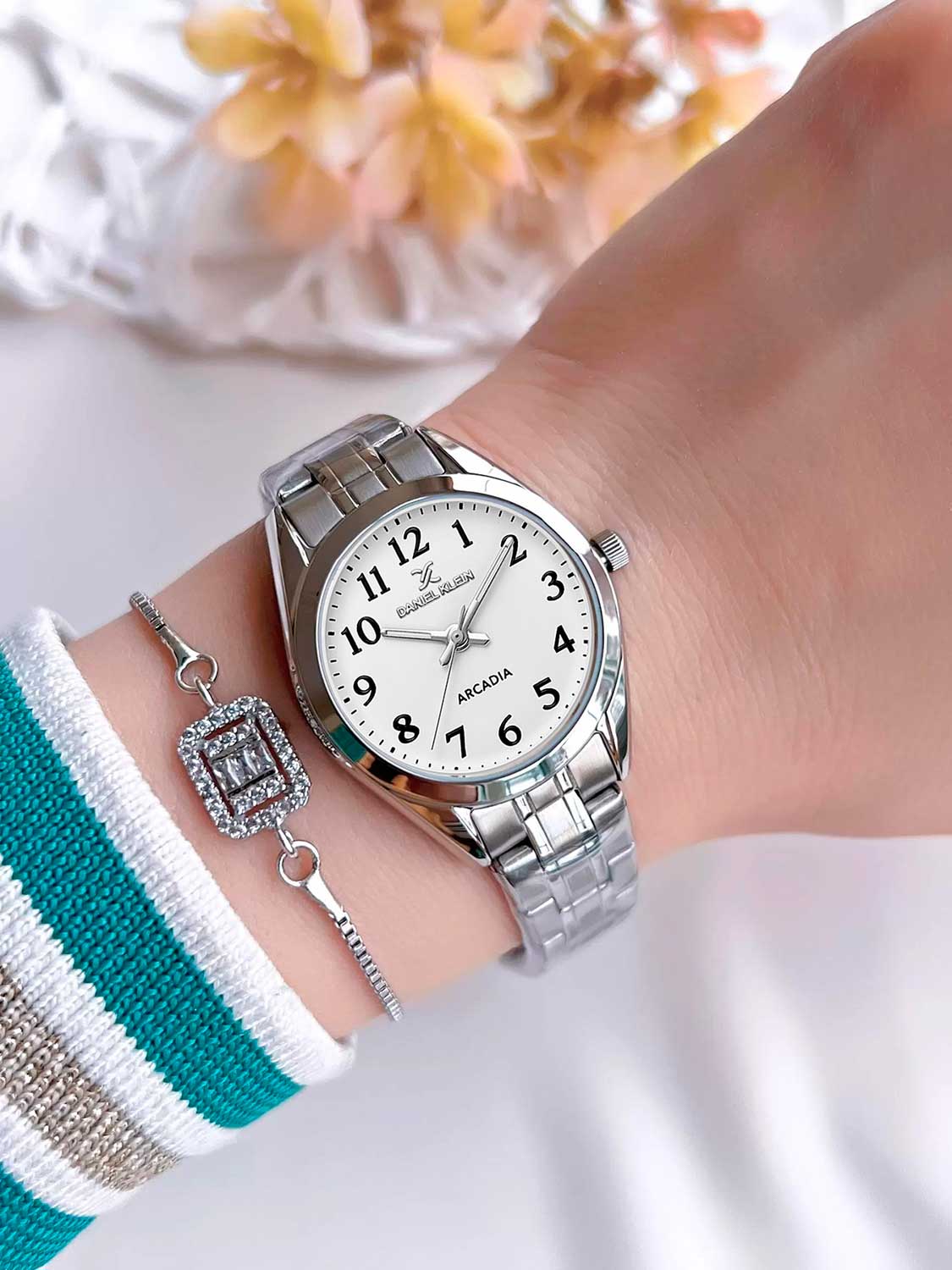 Классический дизайн часов станет идеальным завершением вашего образа на каждый день. Arcadia. Круглый металлический корпус с минеральным стеклом. Циферблат украшен фирменным логотипом Daniel Klein. Метки в виде арабских цифр. Рифленая заводная головка. Браслет с раскладывающейся застежкой.