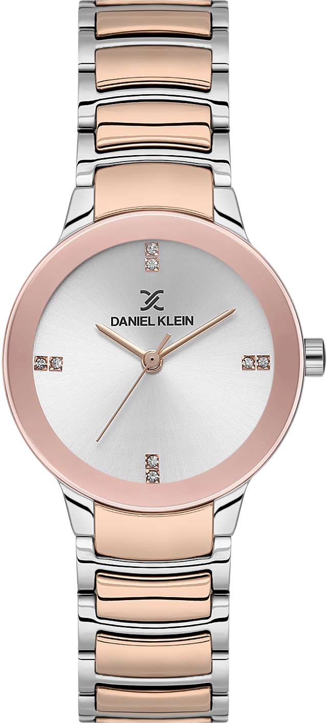 Надежный аксессуар со стильным дизайном - идеальное решение для тех, кто хочет идти в ногу со временем и всегда оставаться на высоте. Женские кварцевые часы. Круглый металлический корпус. Циферблат выполнен по технологии Sunray (солнечные лучи) и украшен фирменным логотипом Daniel Klein. Метки в виде штрихов с кристаллами. Гладкая заводная головка. Стальной браслет с раскладывающейся застежкой.