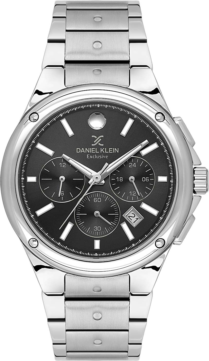 Стильный и функциональный аксессуар идеален для современного ритма жизни. Мужские часы-хронограф с секундомером. Круглый металлический корпус. 12-ти и 24-х часовой формат времени. Циферблат выполнен по технологии Sunray (солнечные лучи) и украшен фирменным логотипом Daniel Klein. Метки в виде штрихов. Окошко даты находится между часовыми метками 4 и 5. Рифленая заводная головка с защитой. Стальной браслет с раскладывающейся застежкой.