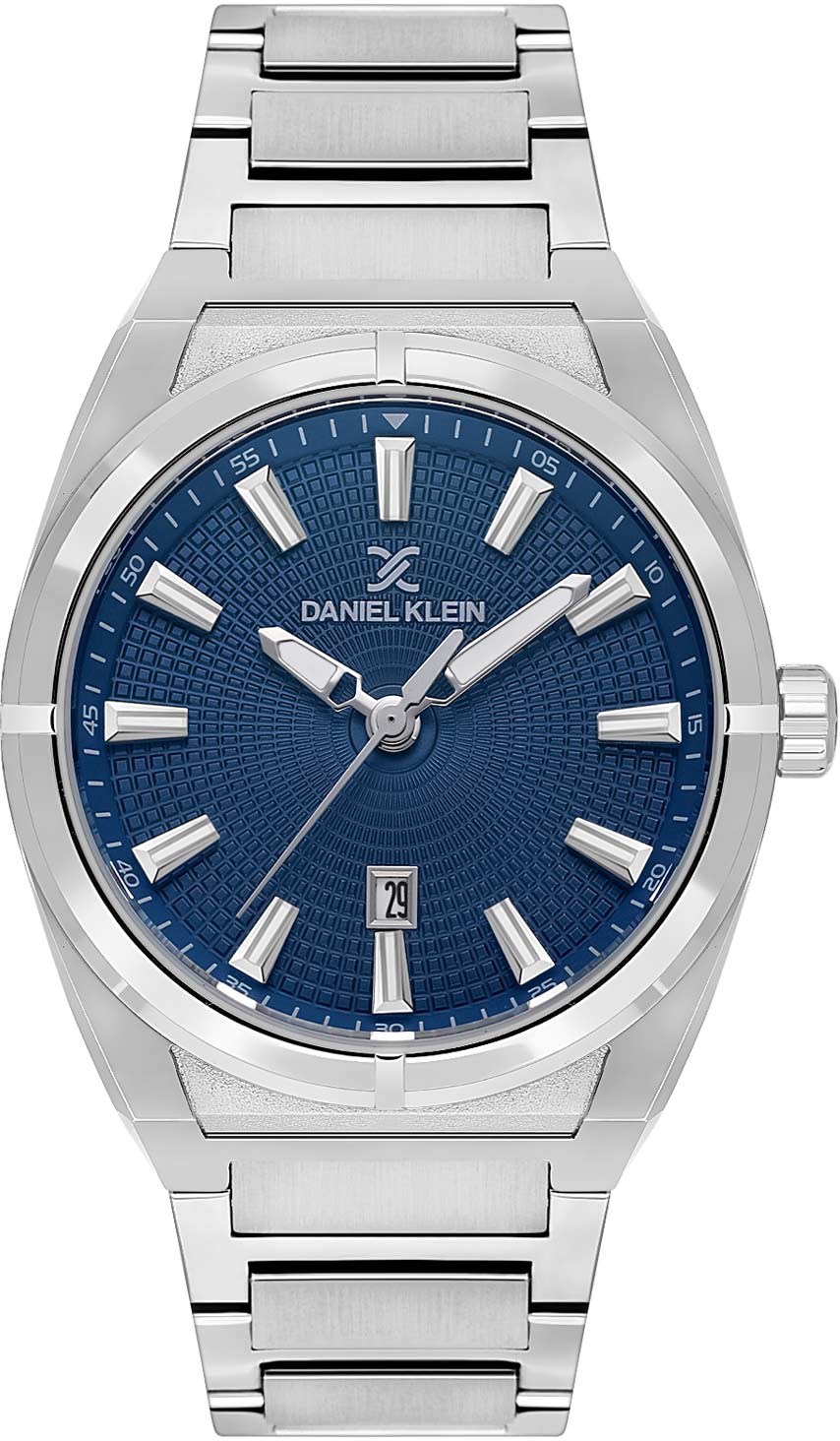 Повседневный аксессуар для уверенных в себе и целеустремленных мужчин. Наручные кварцевые часы. Круглый металлический корпус. Текстурный циферблат украшен фирменным логотипом Daniel Klein. Метки в виде штрихов. Окошко даты находится в положении 6 часов. Рифленая заводная головка. Стальной браслет с раскладывающейся застежкой.