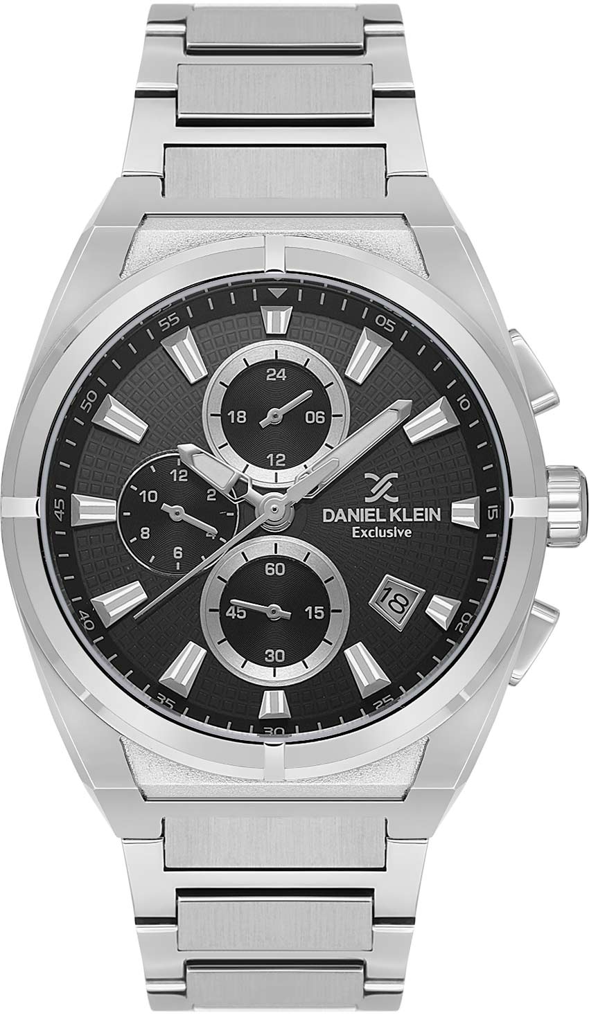 Функциональный аксессуар в современном исполнении прекрасно подойдет деловому человеку в повседневной жизни. Часы-хронограф с секундомером. Круглый металлический корпус. 12-ти и 24-х часовой формат времени. Текстурный циферблат украшен фирменным логотипом Daniel Klein. Метки в виде штрихов. Окошко даты находится в положении 4 часа. Рифленая заводная головка. Стальной браслет с раскладывающейся застежкой.
