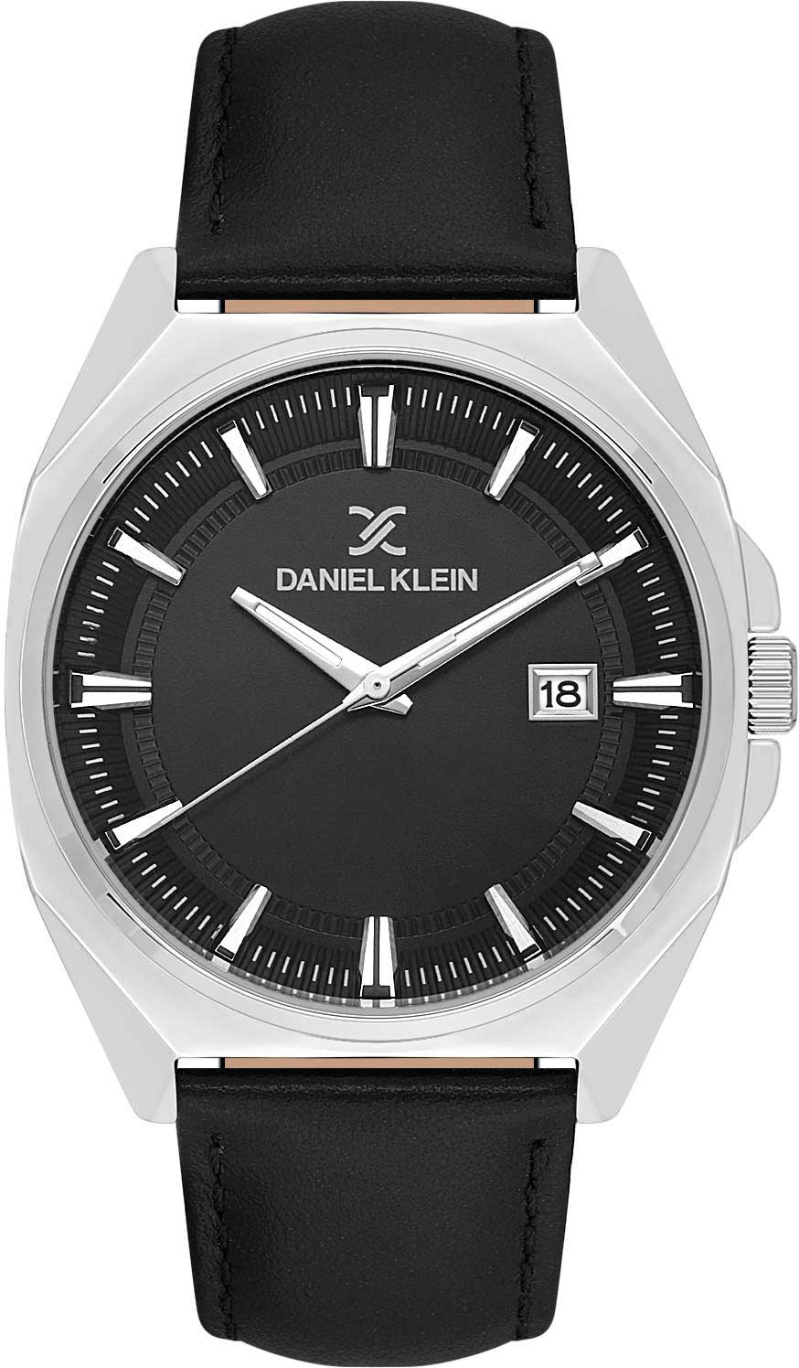 Мужские наручные часы. Металлический корпус. Циферблат выполнен по технологии Sunray (солнечные лучи) и украшен фирменным логотипом Daniel Klein. Метки в виде штрихов. Окошко даты находится в положении 3 часа. Рифленая заводная головка с защитой. Кожаный ремешок с классической застежкой.