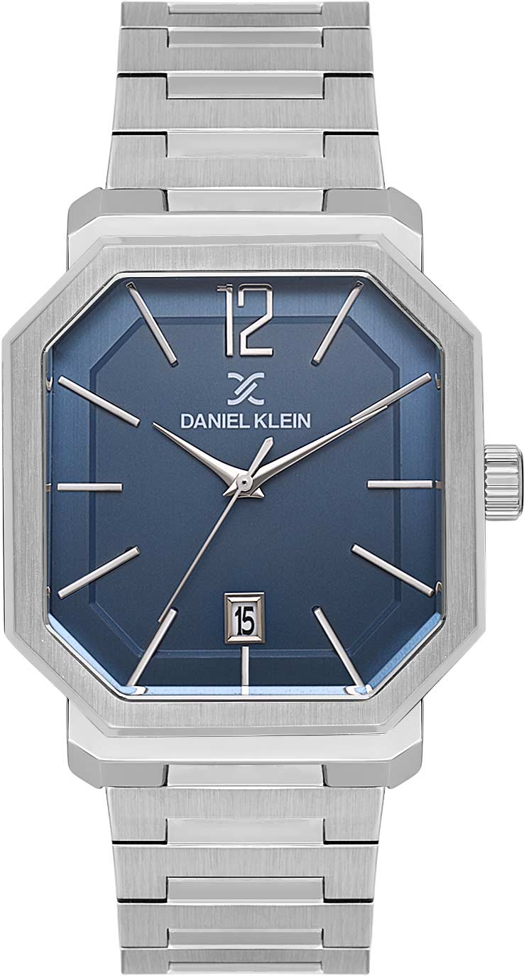 Брутальные наручные часы для уверенных в себе мужчин. Металлический восьмиугольный корпус. Матовый циферблат украшен фирменным логотипом Daniel Klein. Метки в виде штрихов и арабской цифры 12. Окошко даты находится в положении 6 часов. Рифленая заводная головка. Браслет с раскладывающейся застежкой.