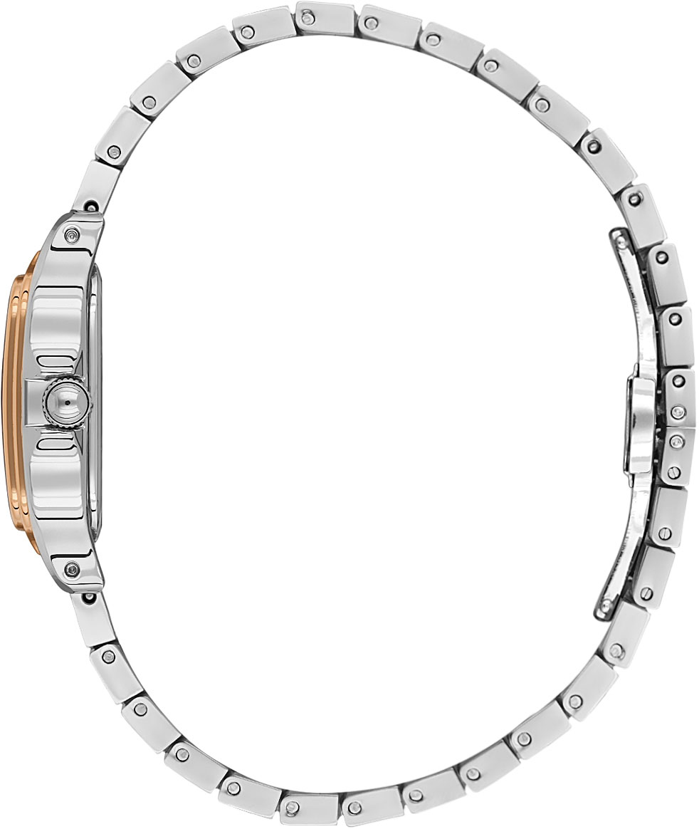 Женские наручные часы Exclusive. Квадратный металлический корпус c полированной поверхностью. Циферблат выполнен по технологии Sunray (солнечные лучи). Метки в виде римских цифр. Мечевидные стрелки в стиле Sword. На отдельных циферблатах отображаются 24-х часовой формат времени, дата и день недели. Рифленая заводная головка с защитой. Стальной браслет с раскладывающейся застежкой.