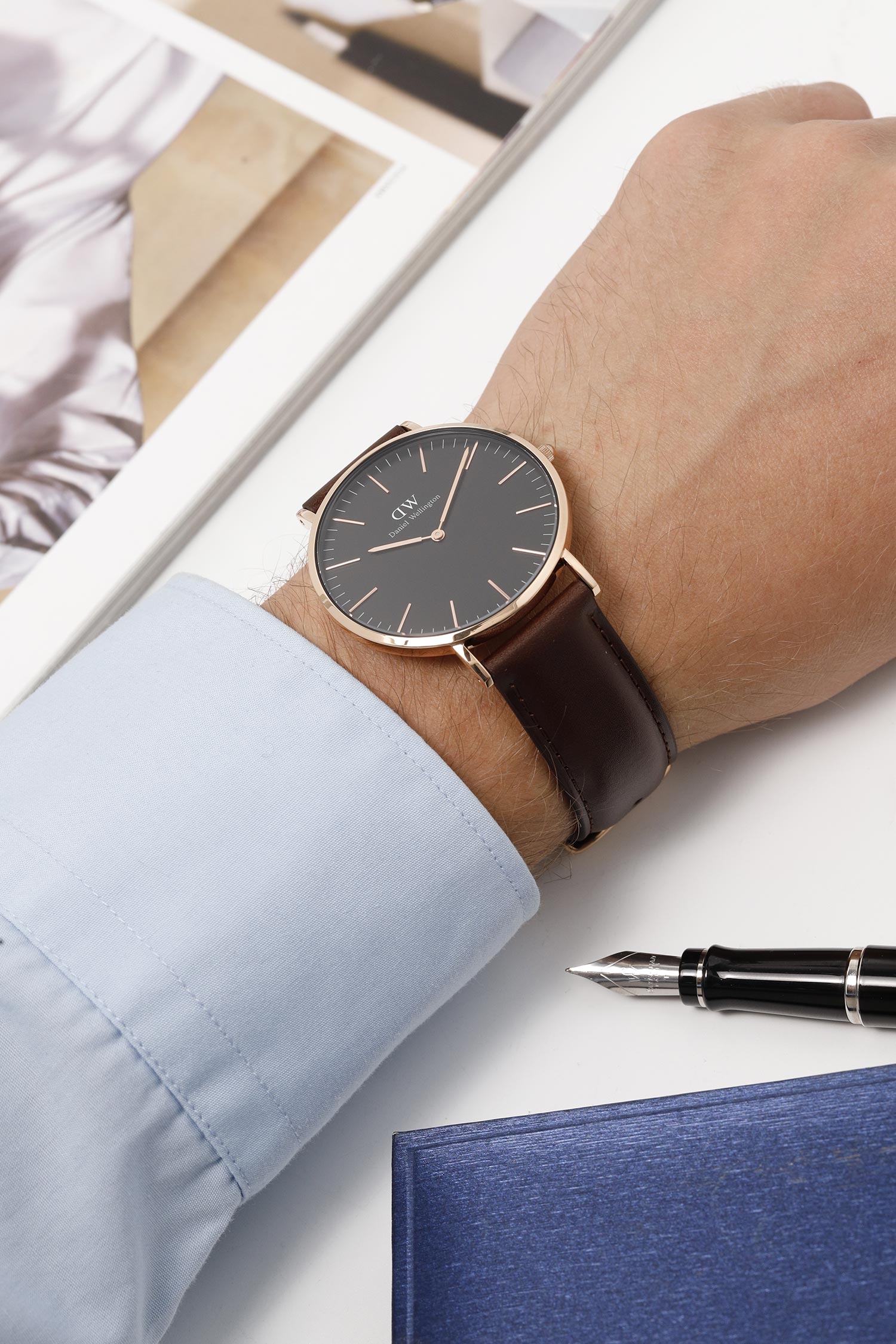 Classic Black Bristol. Ультратонкие. Имеется женский вариант модели DW00100137. Дополнительно к часам в комплект можно приобрести фирменные украшения Daniel Wellington.