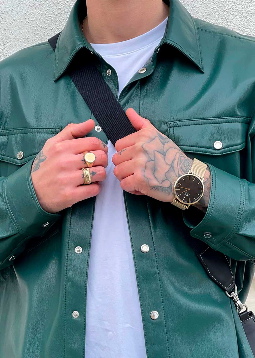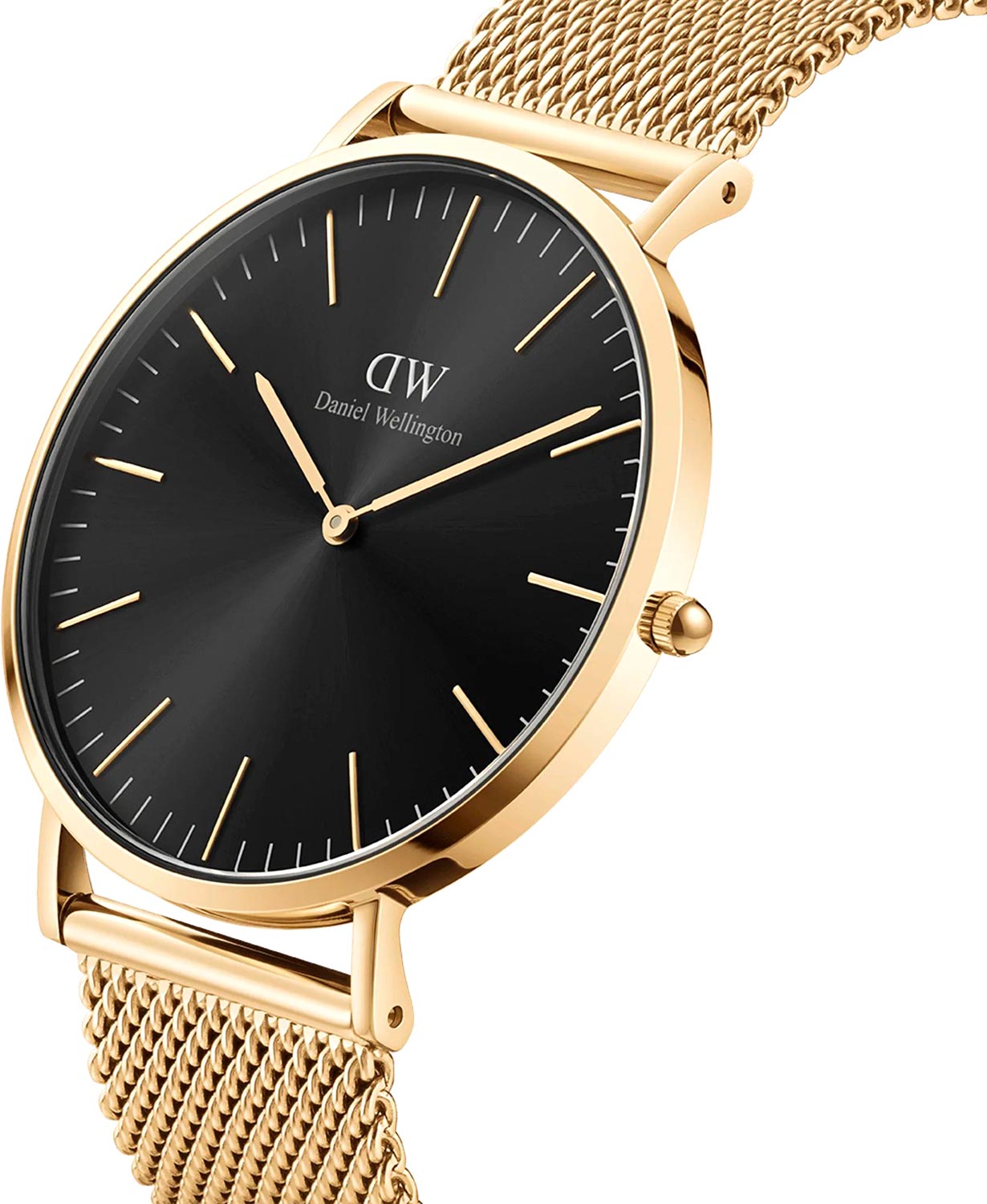 Ультратонкие мужские наручные часы Classic Mesh Onyx Gold. Круглый стальной полированный корпус. Циферблат выполнен по технологии Sunray (солнечные лучи) и украшен фирменным логотипом Daniel Wellington. Накладные метки в виде штрихов. Секундная стрелка отсутствует. Японский кварцевый механизм. Рифленая заводная головка. Надежный и удобный браслет миланского плетения с регулируемой застежкой.