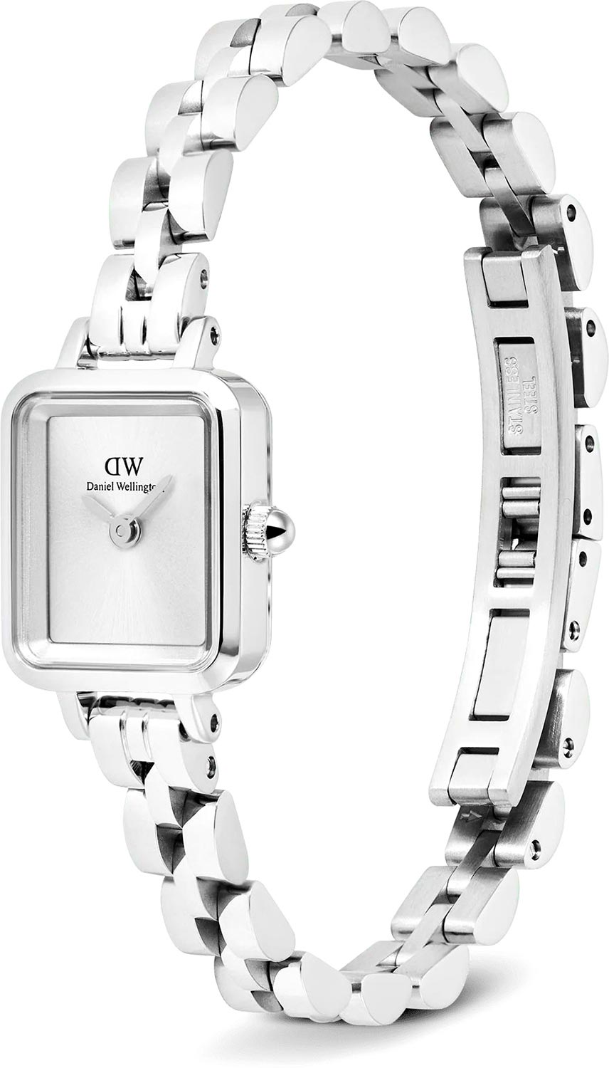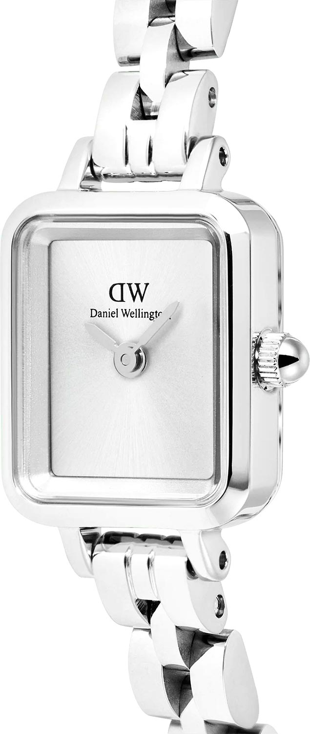 Миниатюрные наручные женские часы Quadro Mini Arch White Sunray Silver с прямоугольным корпусом и надежным японским механизмом. Циферблат без меток выполнен по технологии Sunray (солнечные лучи) и украшен фирменным логотипом Daniel Wellington. Секундная стрелка отсутствует. Рифленая заводная головка. Индивидуальный серийный номер. Изящный стальной браслет с раскладывающейся застежкой.