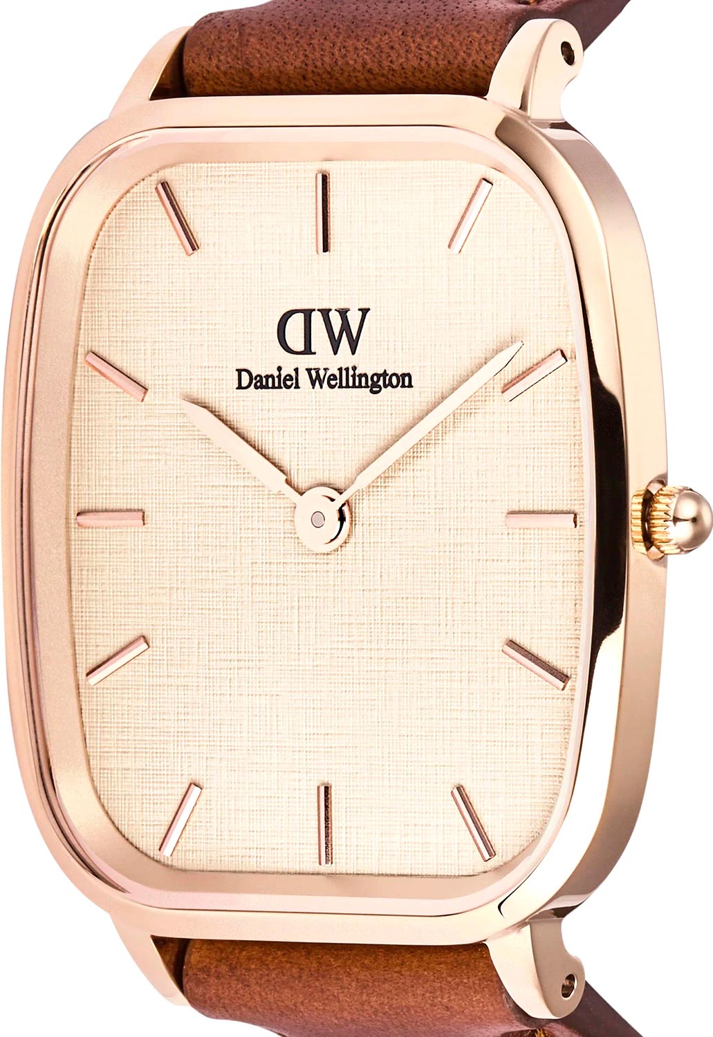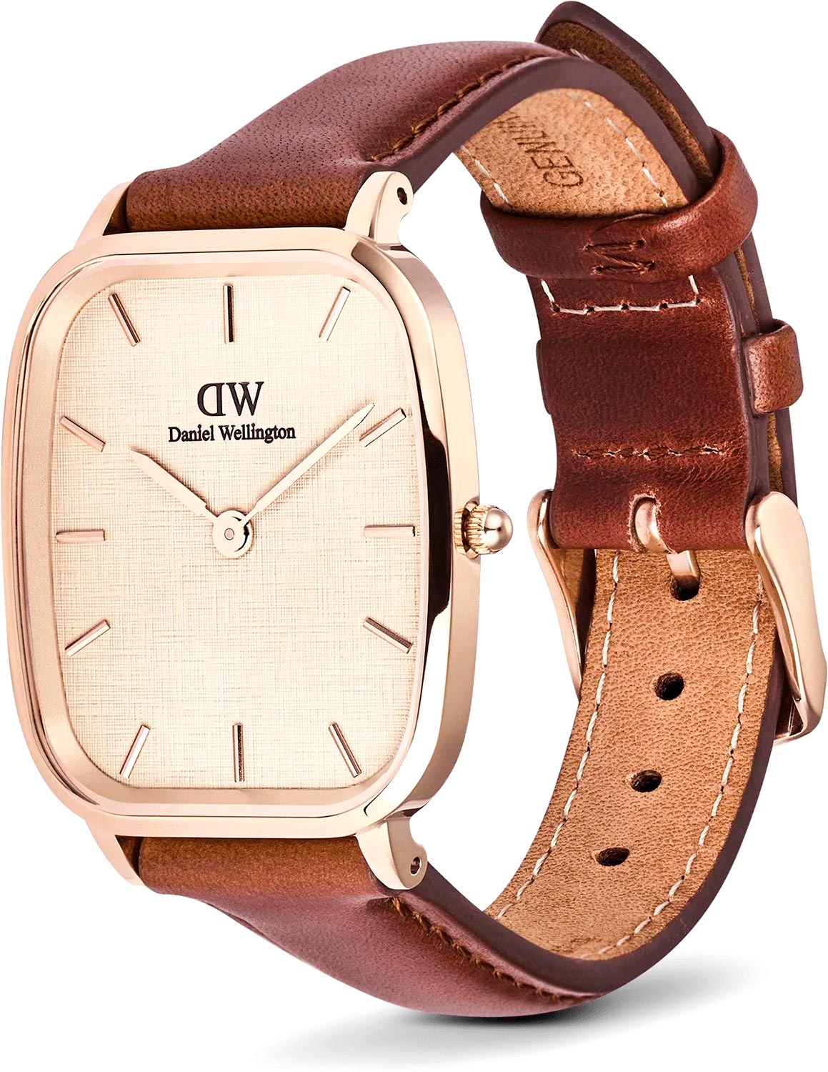 Винтажные наручные мужские часы Marlon St Mawes Linen Rose Gold. Стальной прямоугольный корпус в форме подушки. Японский кварцевый механизм. Циферблат с тиснением в виде льняного полотна, дополнен фирменным логотипом Daniel Wellington. Накладные метки в виде штрихов. Секундная стрелка отсутсвует. Рифленая заводная головка. Удобный кожаный ремешок с классической застежкой.