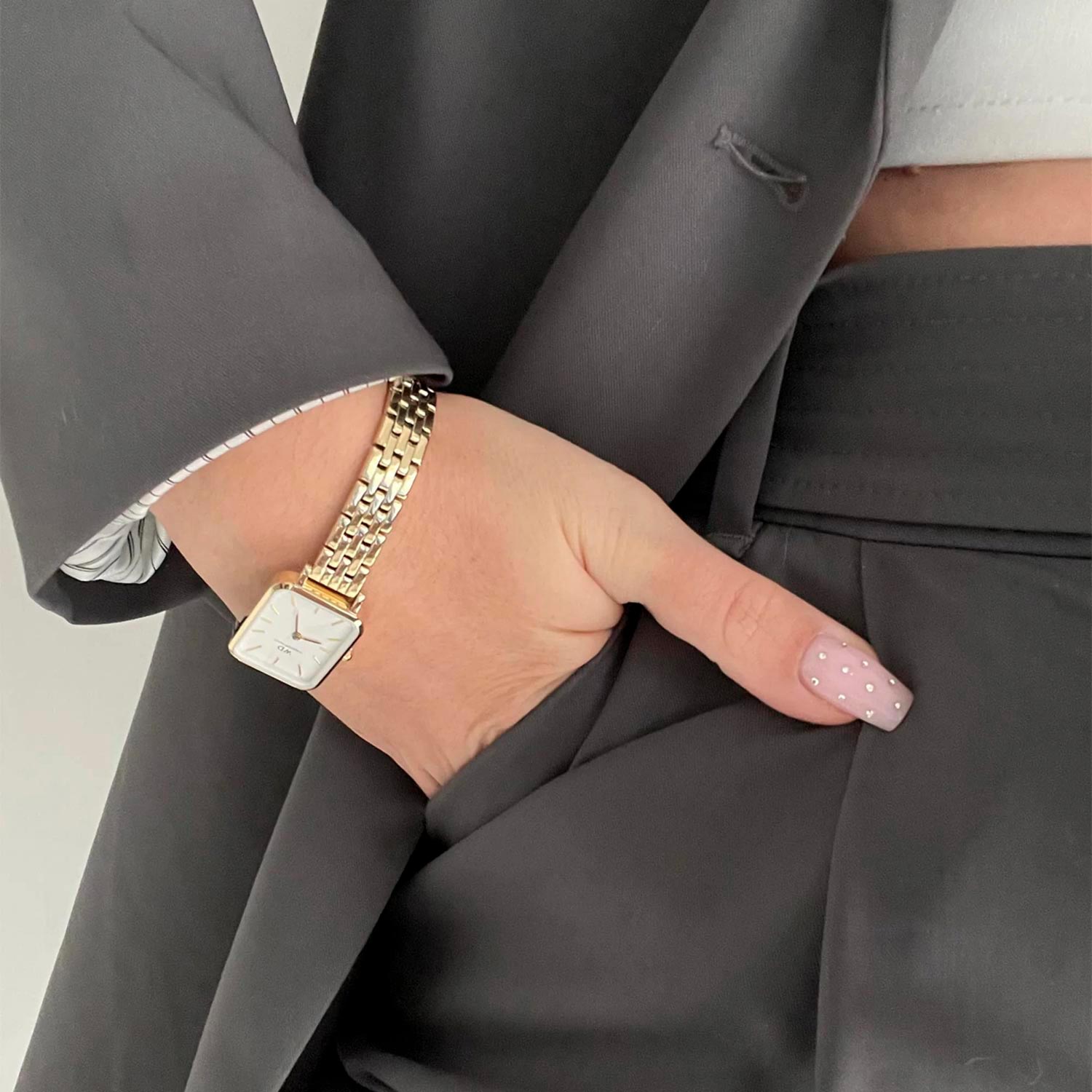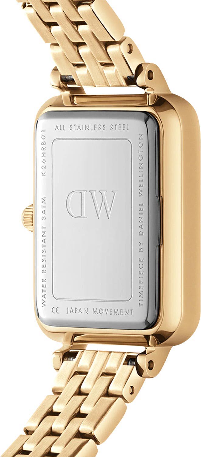 Изящный и классический дизайн часов покорит вас с первого взгляда, идеальный вариант для женщин, ценящих красоту, стиль и комфорт. Наручные ультратонкие женские часы Quadro 5-Link с прямоугольным корпусом и надежным японским механизмом. Матовый циферблат украшен фирменным логотипом Daniel Wellington. Накладные метки в виде штрихов. Японский кварцевый механизм. Рифленая заводная головка. Удобный кожаный ремешок с классической застежкой.