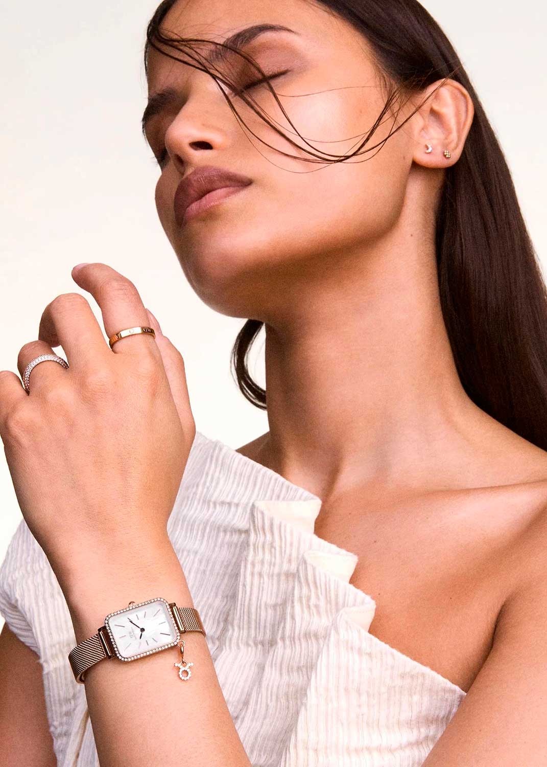 Наручные часы Daniel Wellington Quadro Charm Bezel 20x26 Melrose White MOP RG