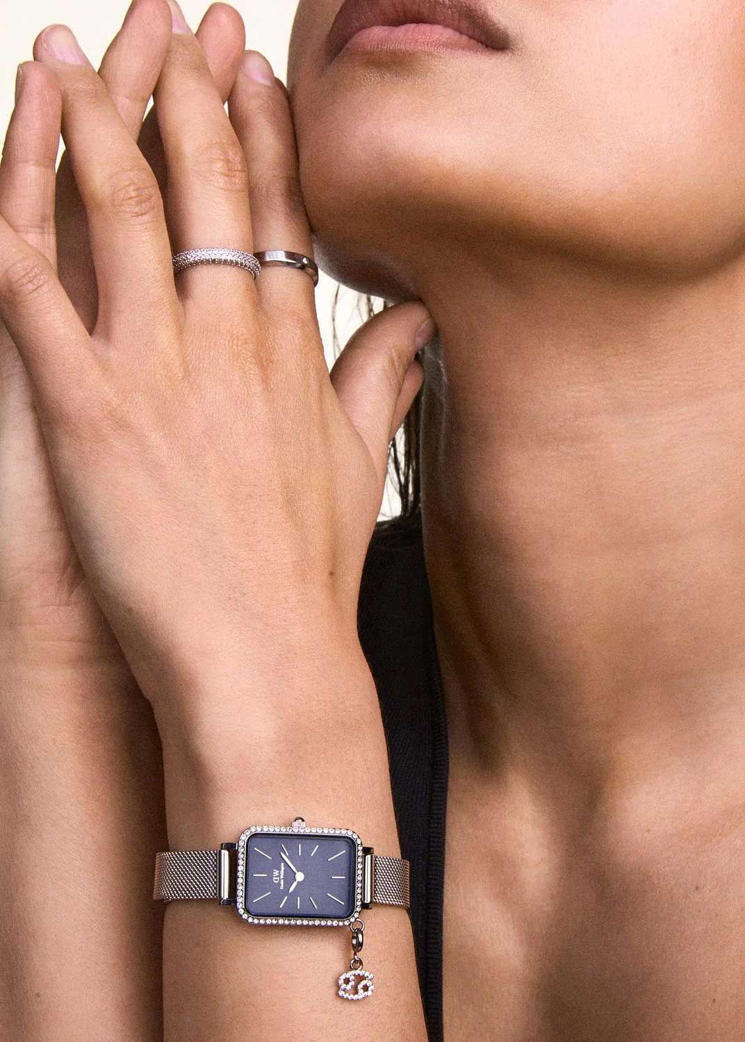 Наручные часы Daniel Wellington Quadro Charm Bezel 20x26 Sterling Black MOP S