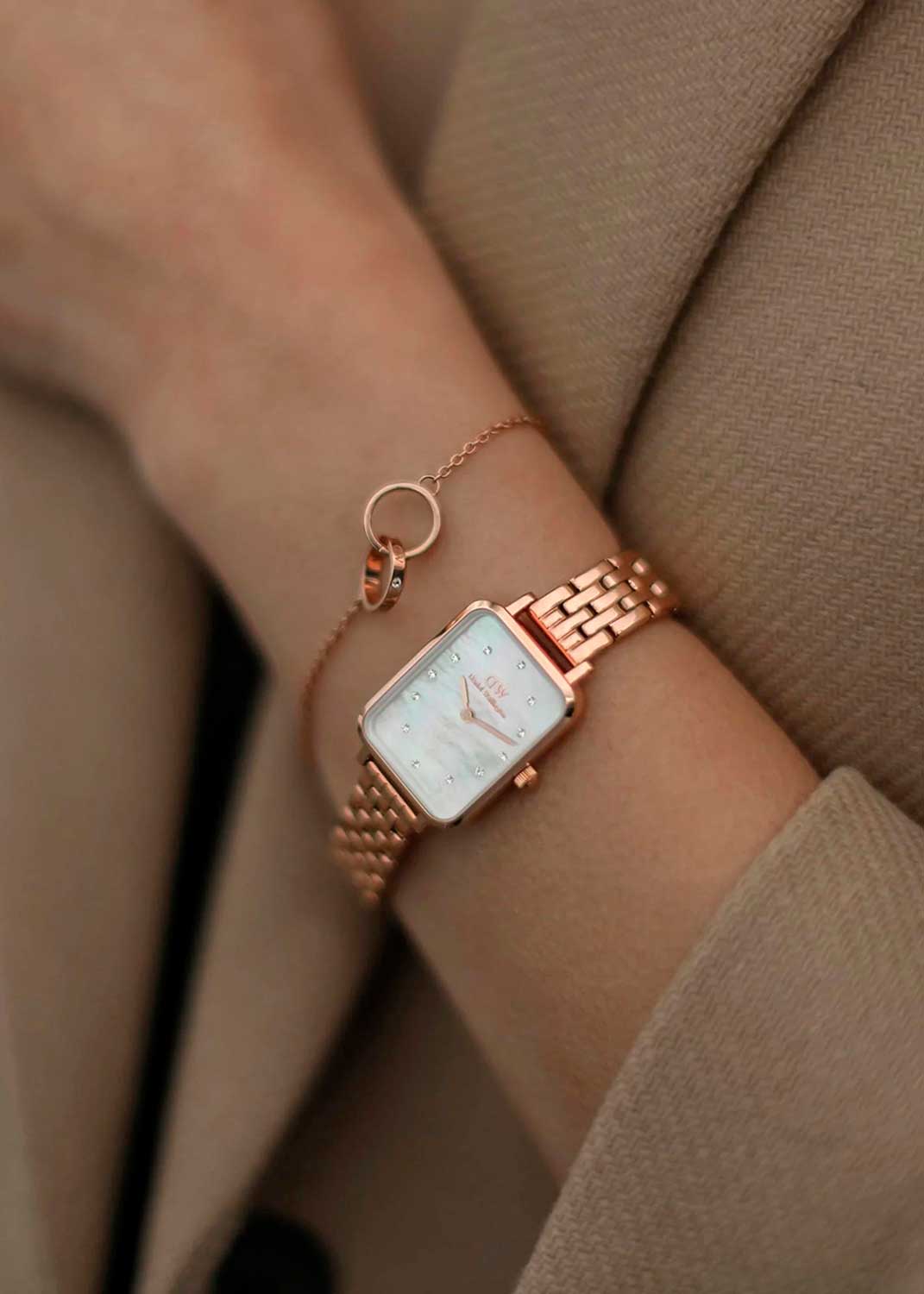 Наручные часы Daniel Wellington Quadro Lumine 20x26 5-Link RG MOP White