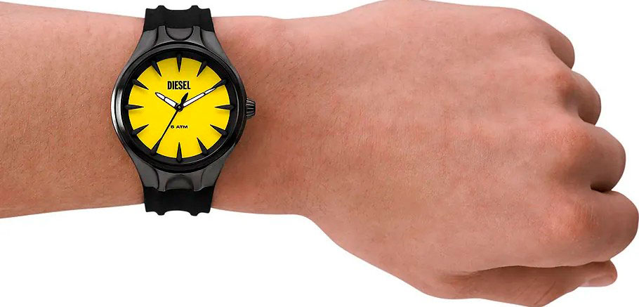 Яркий дизайн этих часов привлечет внимание и прекрасно дополнит ваш стильный образ. Мужские наручные часы. Метки в виде штрихов. Рифленная заводная головка. Силиконовый ремешок с классической застежкой.