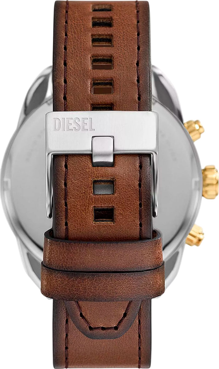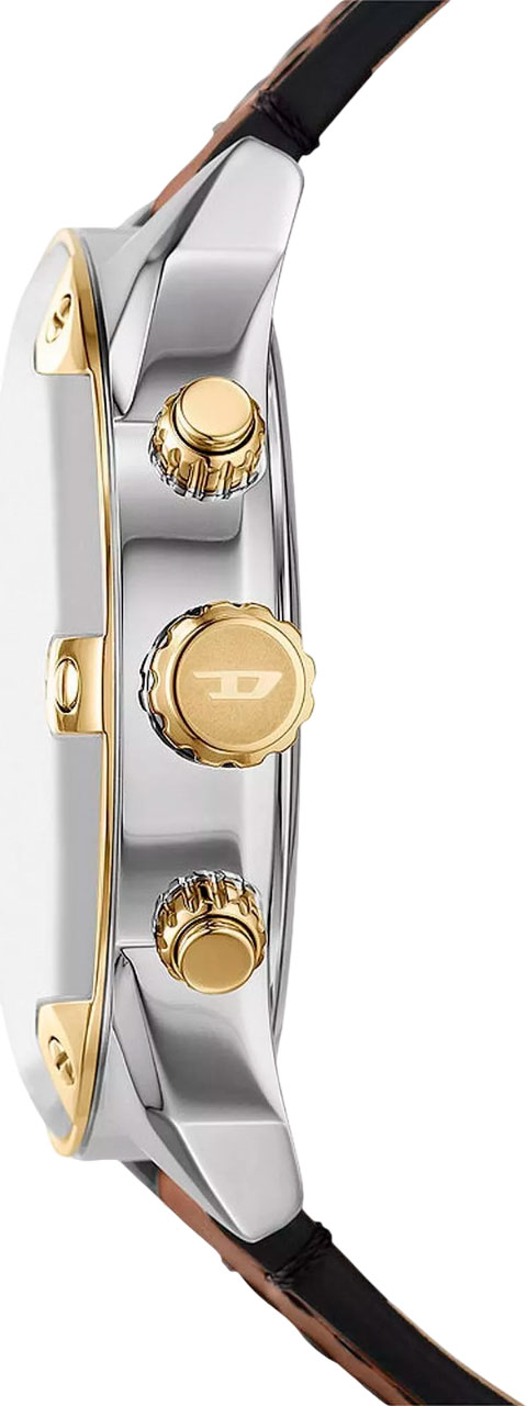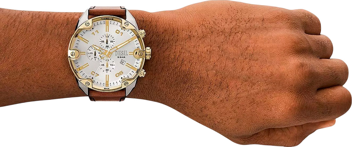Мужские часы-хронограф с секундомером. Круглый корпус из нержавеющей стали с декоративными винтами. Циферблат выполнен по технологии Sunray (солнечные лучи). Метки в виде арабских цифр и штрихов. Окошко даты находится в положении 4 часа. Рифленая заводная головка. Кожаный ремешок с классической застежкой.