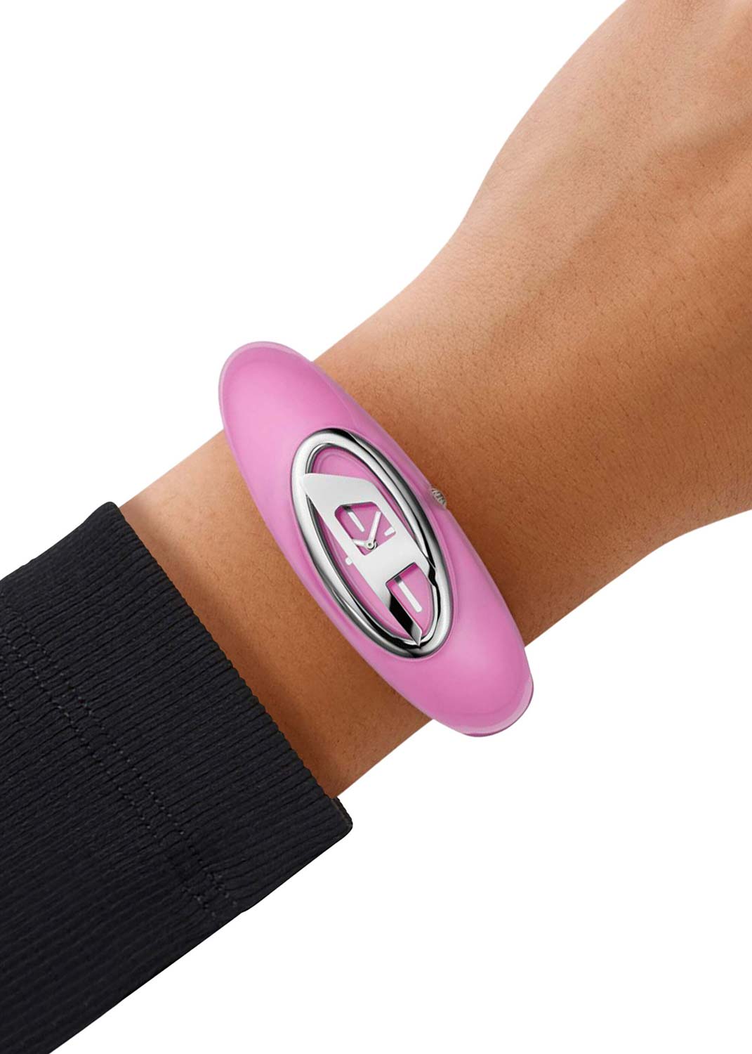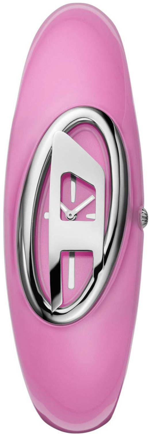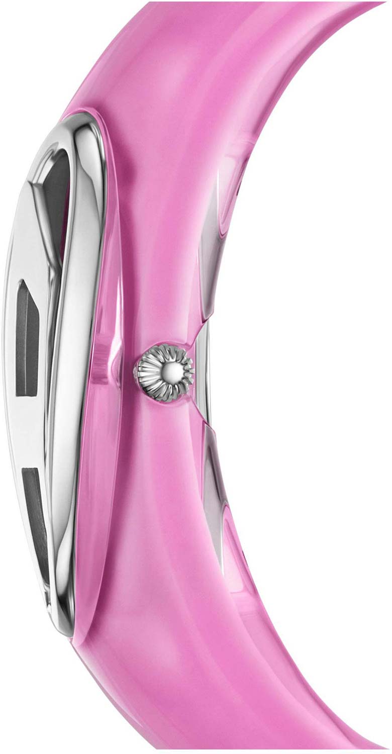 Wonder-D. Женские наручные часы. Овальный стальной корпус с полированной поверхностью. Циферблат выполнен по технологии Sunray (солнечные лучи), декорирован перевернутой буквой D и защищен минеральным стеклом. Метки в виде штрихов. Гладкая заводная головка. Часы укомплектованы широким розовым ремешком из прочного материала, создающим эффект браслета.