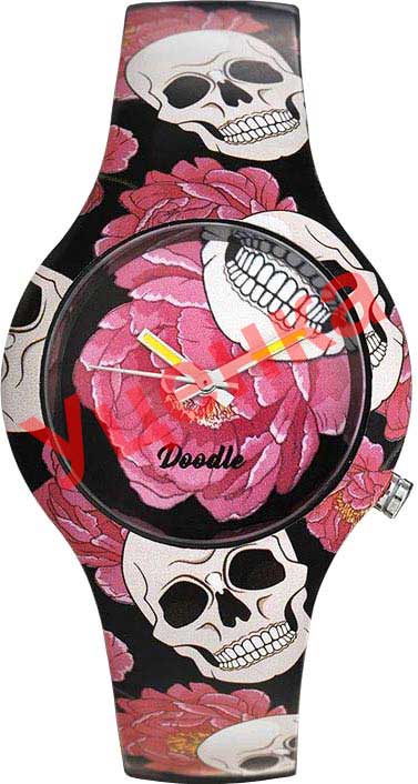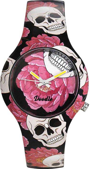 Женские наручные часы Flowers and Skulls из коллекции Santa Muerte Mood с круглым стальным корпусом. Дизайн с яркими розовыми цветами и белыми черепами. Ремешок из гипоаллергенного силикона. Классическая застежка.