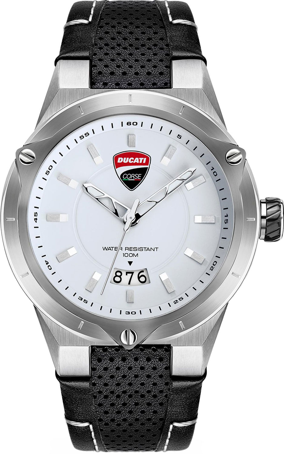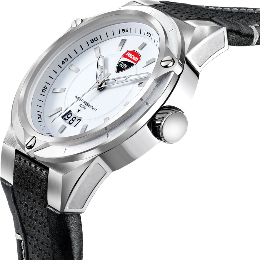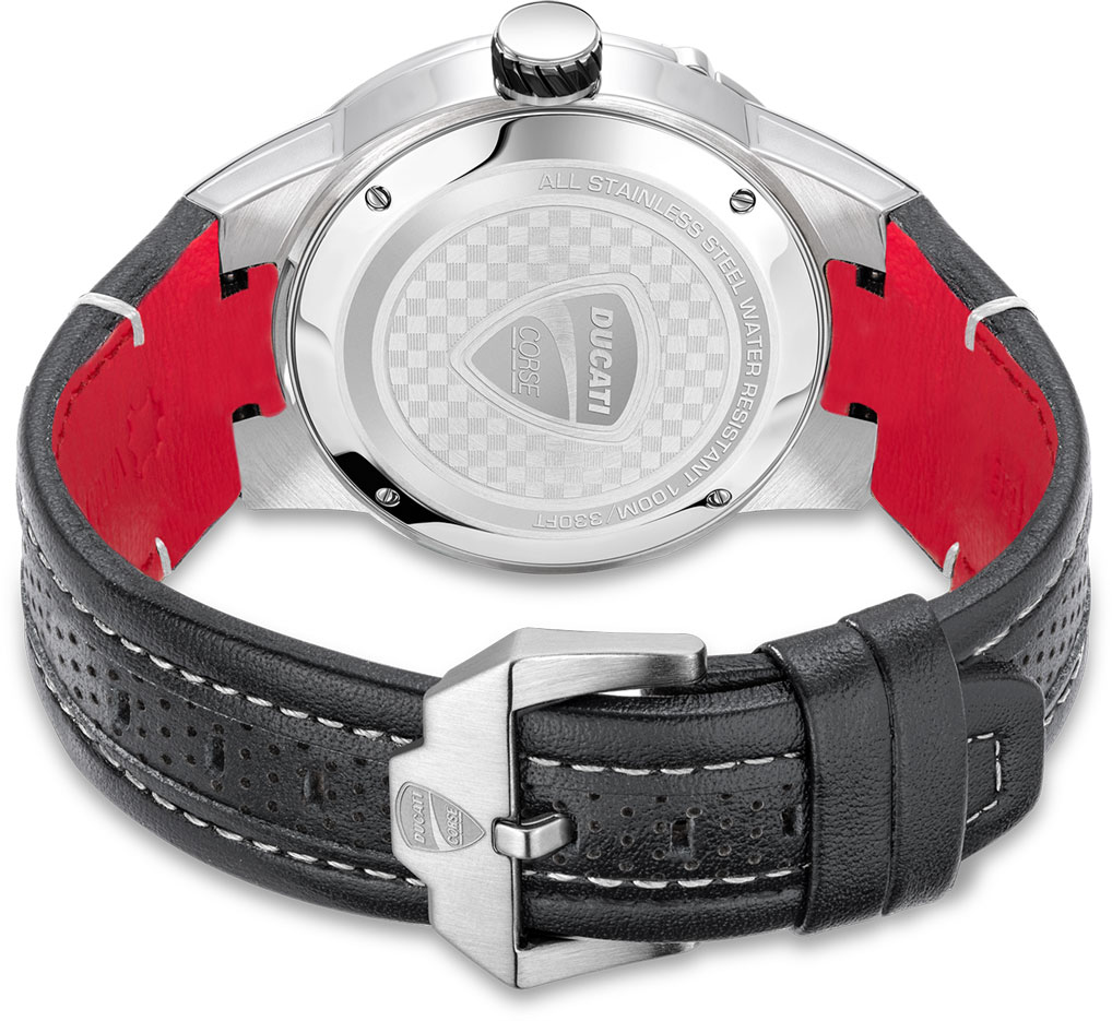 Аксессуар, созданный для удовлетворения самых взыскательных вкусов. Стиль прекрасно сочетается с несравненным итальянским мастерством. Мужские часы. Круглый корпус из нержавеющей стали с закаленным минеральным стеклом Hardlex. Эффектный безель дополнен стильными винтами и метками в виде штрихов. Циферблат, задняя крышка и застежка украшены логотипом Ducati. Часовые метки в виде штрихов. Окошко даты находится в положении 6 часов. Рифленая заводная головка выполнена в стиле шины. Задняя крышка крепится на винтах. Удобный перфорированный ремешок, изготовленный из натуральной итальянской кожи, с мягкой подкладкой и классической застежкой.