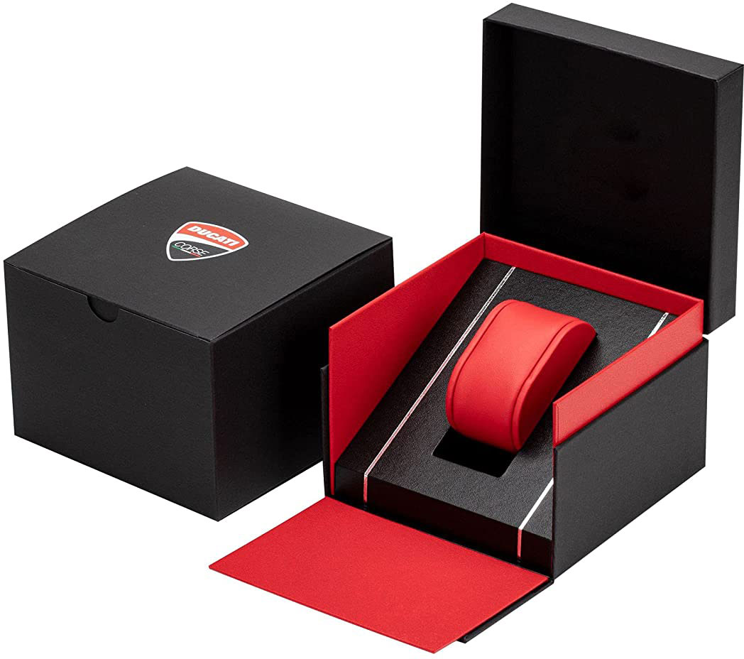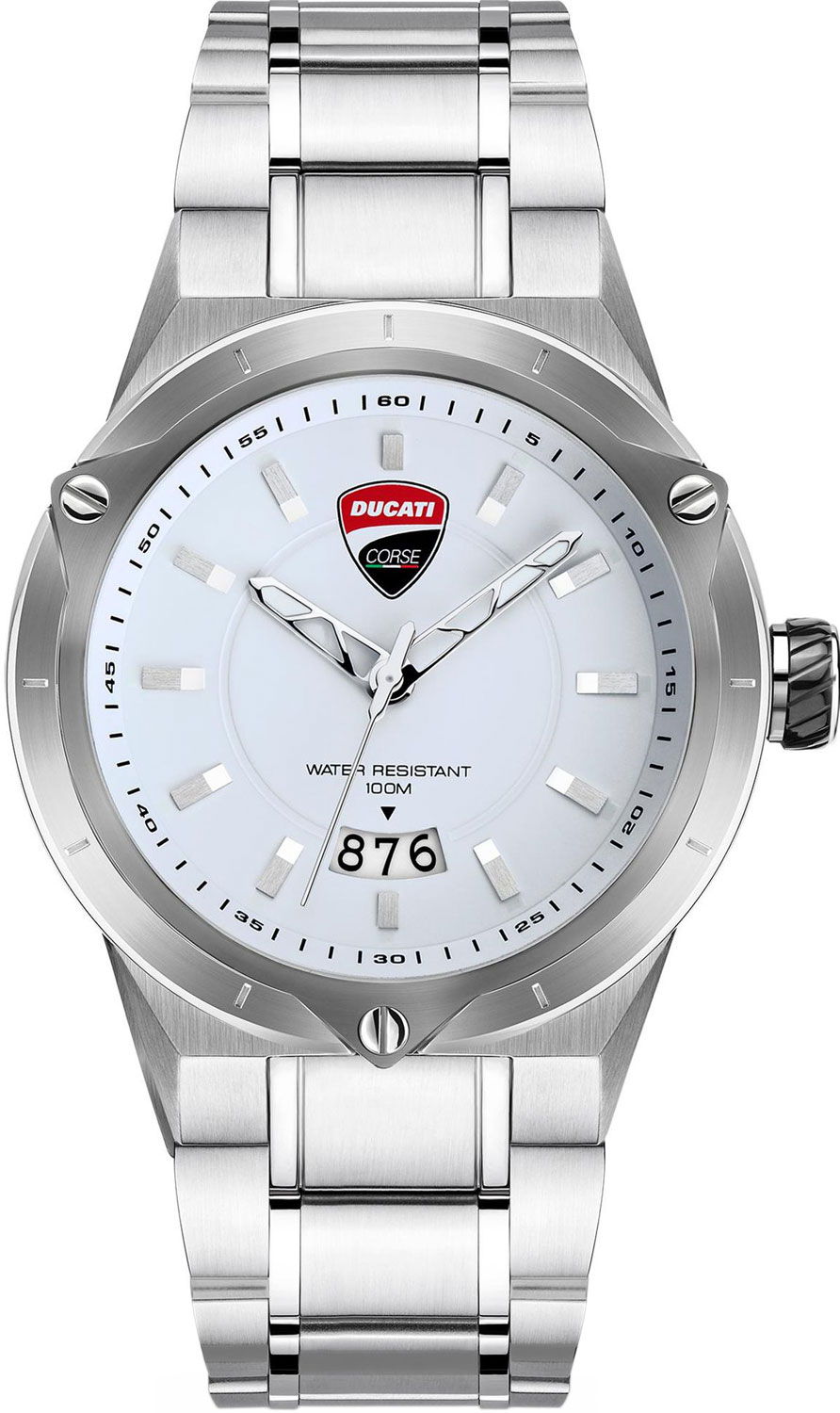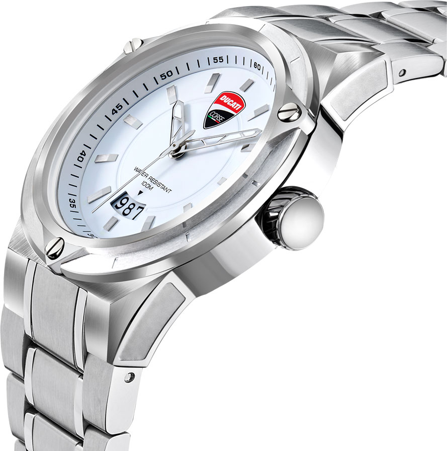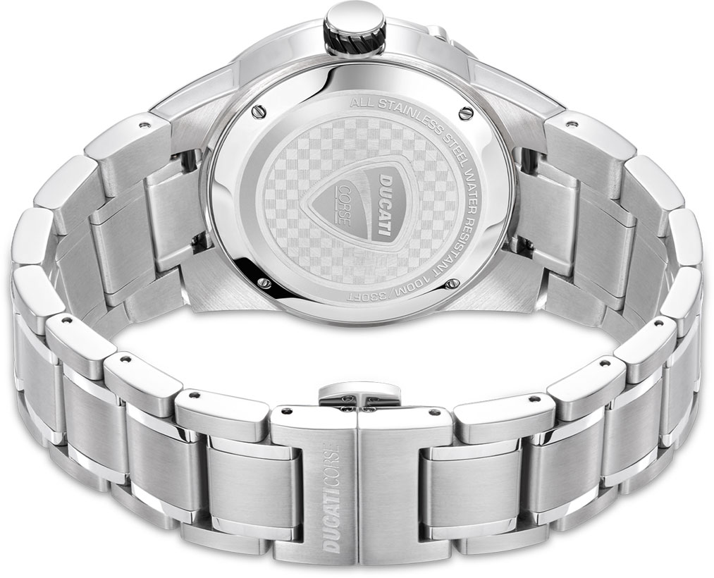 Аксессуар, созданный для удовлетворения самых взыскательных вкусов. Стиль прекрасно сочетается с несравненным итальянским мастерством. Мужские часы. Круглый корпус из нержавеющей стали с закаленным минеральным стеклом Hardlex. Эффектный безель дополнен стильными винтами и метками в виде штрихов. Циферблат, задняя крышка и застежка украшены логотипом Ducati. Часовые метки в виде штрихов. Окошко даты находится в положении 6 часов. Рифленая заводная головка выполнена в стиле шины. Задняя крышка крепится на винтах. Удобный перфорированный ремешок, изготовленный из натуральной итальянской кожи, с мягкой подкладкой и классической застежкой.