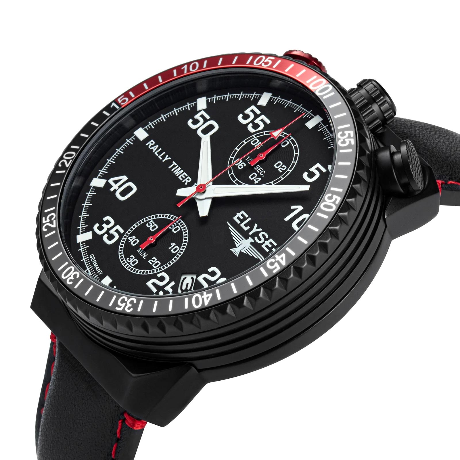 Современный хронограф, вдохновленный раллийными гонками станет вашим верным компаньоном в вопросах времени. Rally Timer I. Часы-хронограф с секундомером. Секундомер до 1ч, точность 1/20c. Заводная головка и кнопки управления хронографа находятся в верхней части корпуса, что очень актуально в раллийном спорте. Циферблат с метками в виде штрихов и арабских цифр защищен прочным минеральным стеклом. Окошко даты находится между отметками 4 и 5 часов. Задняя крышка крепится на 6-ти винтах. Ремешок с классической застежкой.
