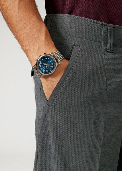 Часы-хронограф с секундомером Luigi. 12-ти и 24-х часовой формат времени. Метки в виде арабских цифр и штрихов. Окошко даты находится в положении 6 часов. Браслет с раскладывающейся застежкой.