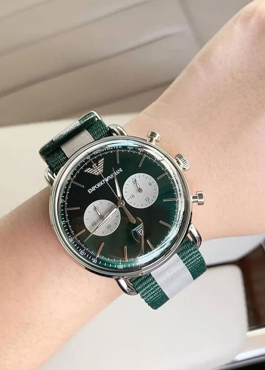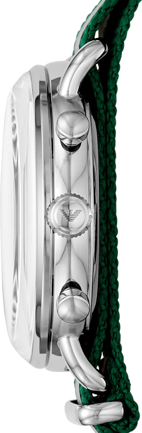 Мужские часы-хронограф Aviator с секундомером и тахиметром. 12-ти и 24-х часовой формат времени. Круглый корпус из нержавеющей стали. Метки в виде штрихов. Стрелки с люминесцентным покрытием, которое светится в темноте после непродолжительной зарядки на свету. Окошко даты находится в положении 6 часов. Рифленая заводная головка. Ремешок со светоотражающей полосой.