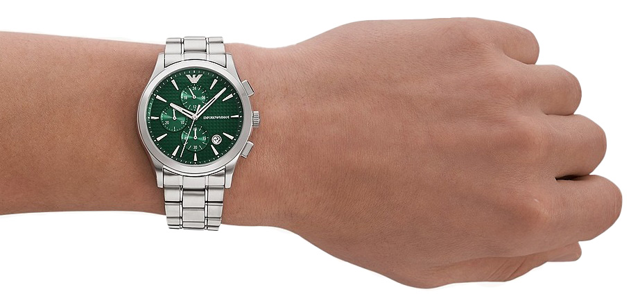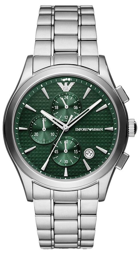 Часы-хронограф от Emporio Armani раскроют мужественный и спортивный характер своего обладателя. Мужские часы-хронограф с секундомером. 12-ти и 24-х часовой формат времени. Корпус изготовлен из высококачественной нержавеющей стали. Метки в виде штрихов. Окошко даты находится между отметками 4 и 5 часов. Рифленая заводная головка. Стальной браслет с раскладывающейся застежкой.