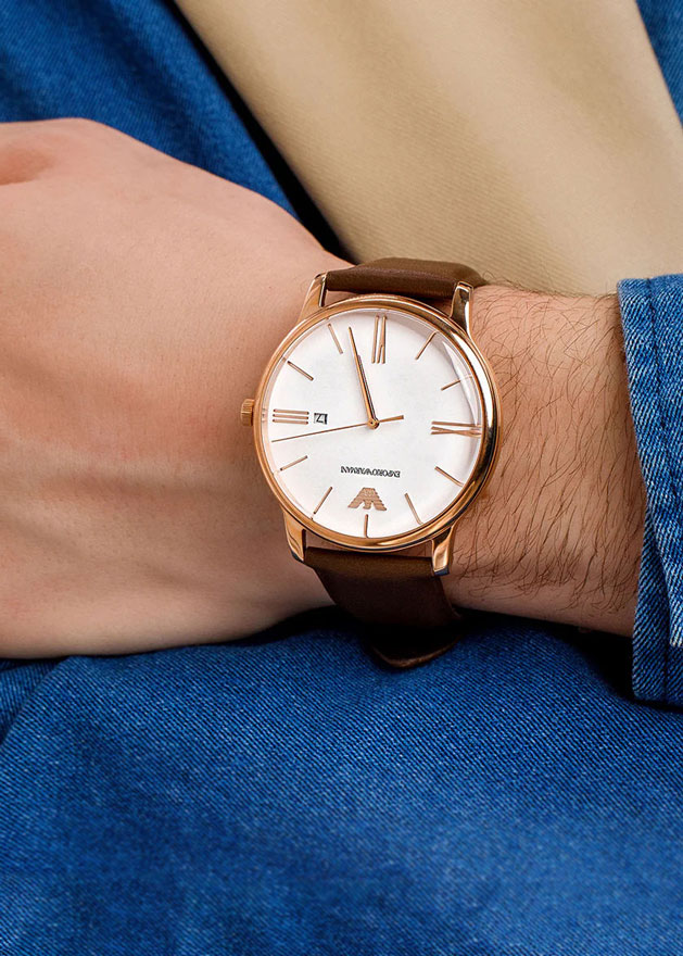 Мужские часы Minimalist с круглым стальным корпусом. Метки в виде штрихов и римских цифр. Окошко даты находится в положении 3 часа. Рифленая заводная головка. Кожаный ремешок с классической застежкой.