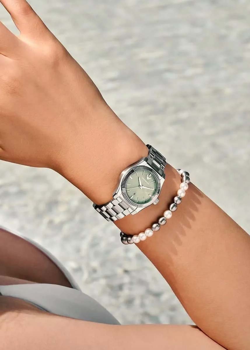 Женские наручные часы Federica. Корпус из нержавеющей стали. Циферблат выполнен по технологии Sunray (солнечные лучи). Метки в виде штрихов. Окошко даты находится в положении 6 часов. Рифленый безель. Рифленая заводная головка. Стальной браслет с раскладывающейся застежкой.