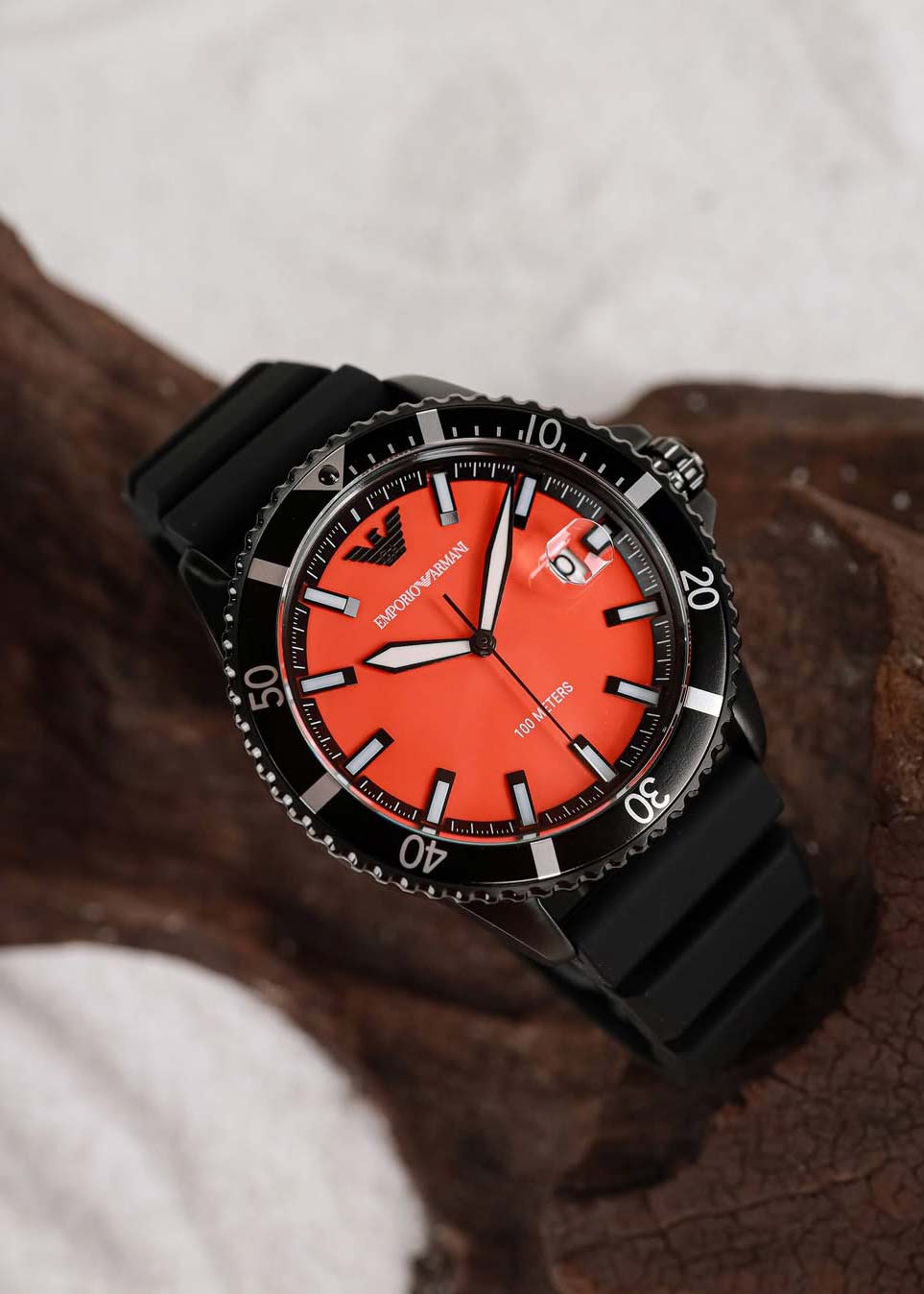 Рифленая заводная головка с защитой. Завинчивающаяся задняя крышка. Силиконовый ремешок с классической застежкой.