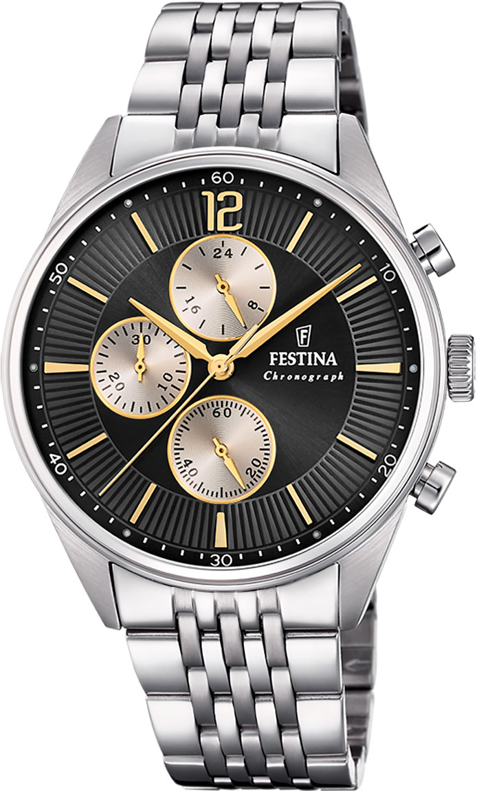 Надежные и удобные часы-хронограф прекрасно дополнят повседневный стиль одежды. Timeless Chronograph. Часы-хронограф с секундомером. 12-ти и 24-х часовой формат времени. Метки в виде штрихов и арабской цифры 12. Рифленая заводная головка. Браслет с раскладывающейся застежкой.
