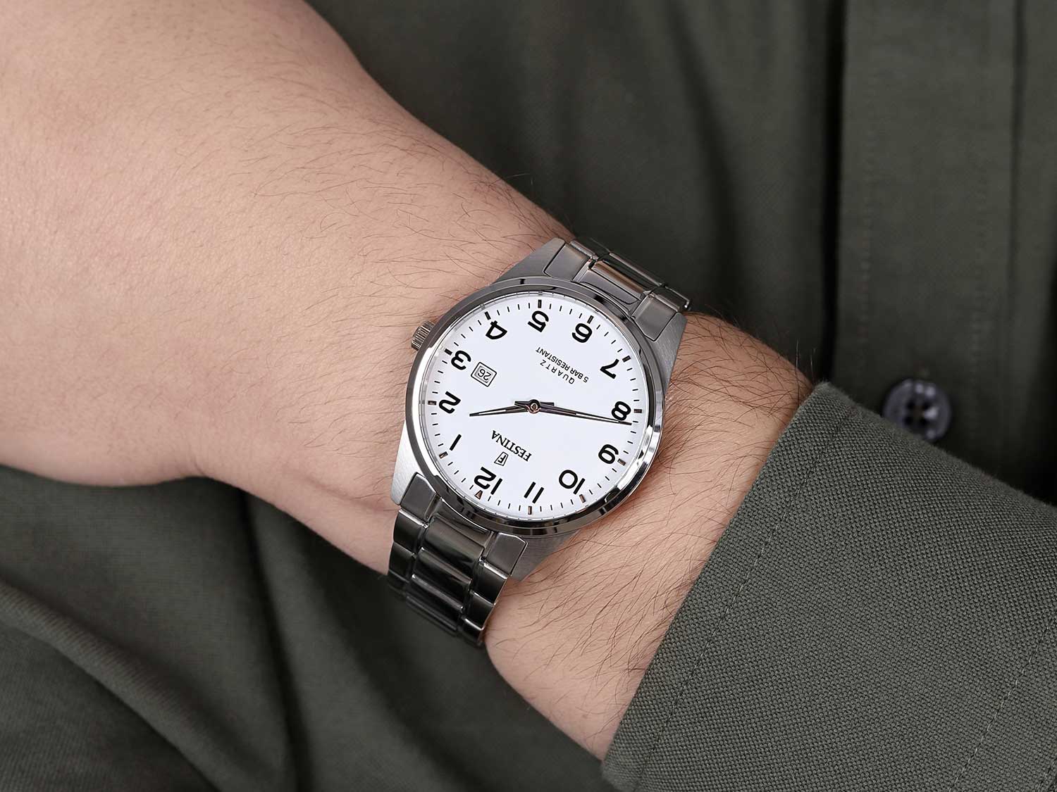 Классический стиль выражает исключительную преданность качеству и внимание к деталям. Эти часы идеально подойдут под деловой костюм. Classic. Мужские кварцевые часы. Метки в виде арабских цифр. Окошко даты находится в положении 3 часа. Рифленая заводная головка. Браслет с раскладывающейся застежкой.