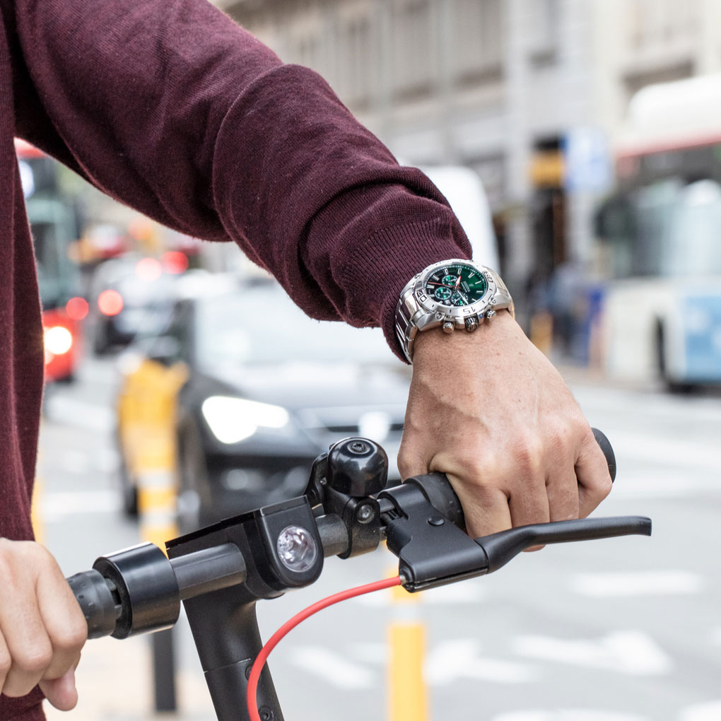 Модные водонепроницаемые мужские часы станут верным помощником и стильным аксессуаром. 20543. Часы-хронограф с секундомером. 12-ти и 24-х часовой формат времени. Круглый корпус изготовлен из брашированной нержавеющей стали 316L и украшен стильными винтами. Циферблат выполнен по технологии Sunray (солнечные лучи) и украшен фирменным логотипом Festina Chrono Bike. Окошко даты находится в положении между 4 и 5 часами. Метки в виде штрихов. Рифленые кнопки и заводная головка с защитой. Надежный стальной браслет с раскладывающейся застежкой. Циферблат, заводная головка и застежка украшены фирменным логотипом Festina.